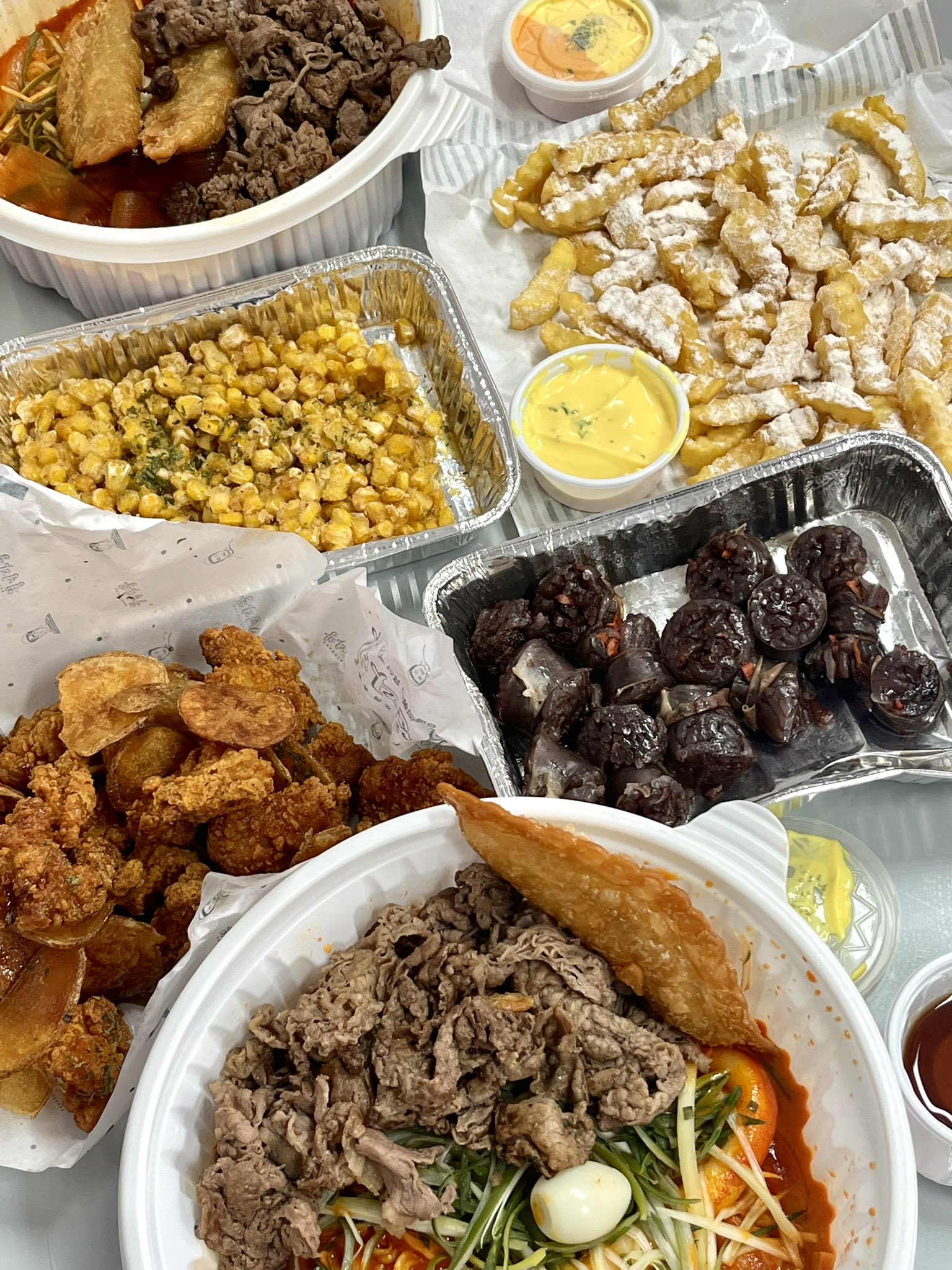 간만에 여자짓했다 (=청년다방 차돌떡볶이 두 통에 버갈튀 허니간장순살치킨 핫버터갈릭옥수수튀김 순대까지 시켜서 떵개하기♡..)