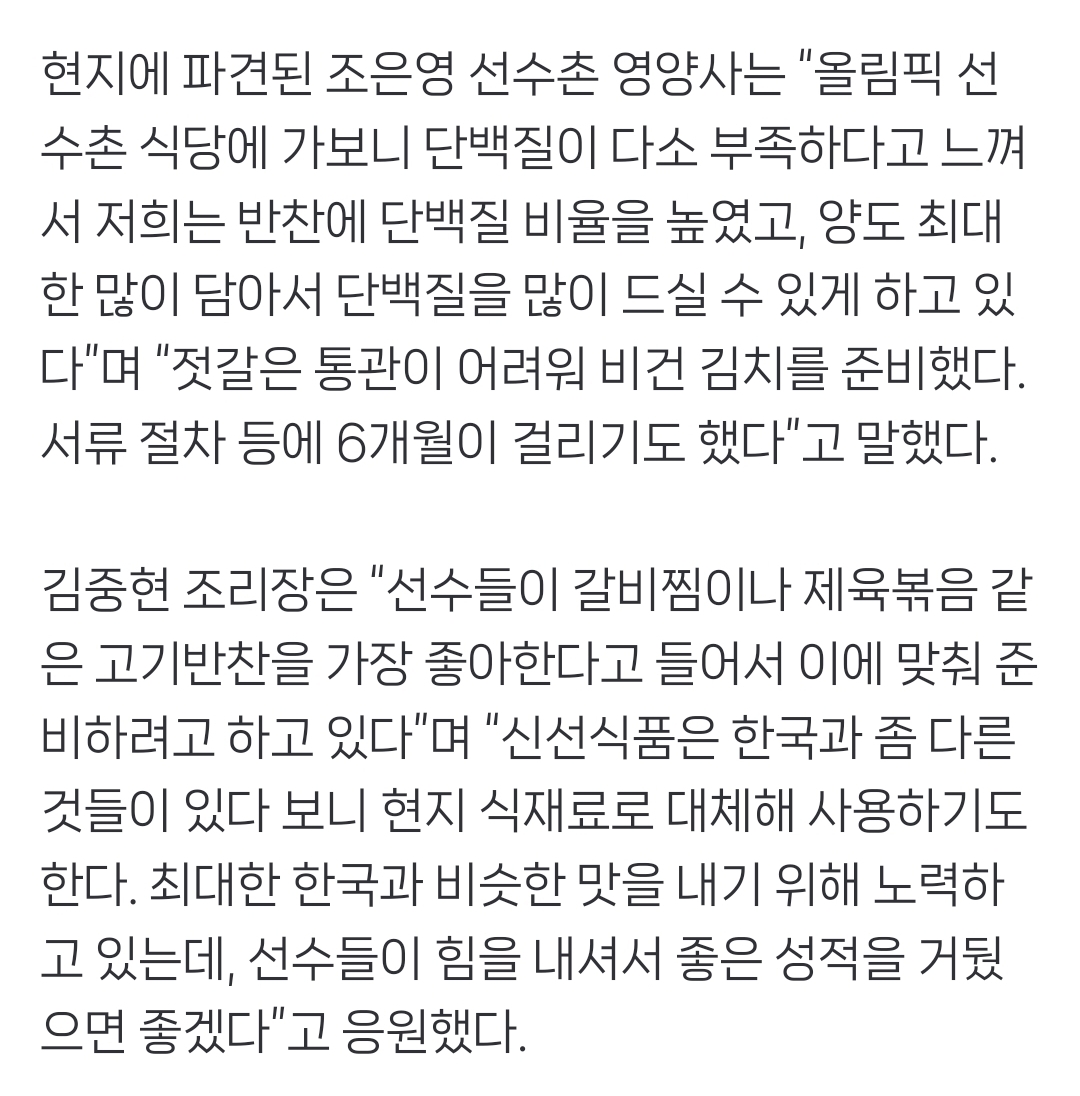 대한체육회에서 꾸린 급식 지원단도 같이 밀라노 가서