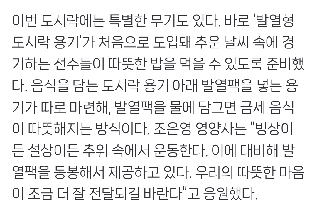 심지어 이번에 처음으로 발열도시락 도입됐다고 함