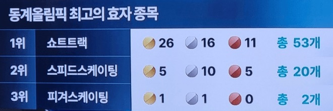 [흥미돋]대한민국 동계 올림픽 최고의 효자종목 TOP3.jpg 작성자이또한지나가|작성시간26.02.10|조회수12,480 목록 댓글 10 글자크기 작게가 글자크기 크게가 출처: https://theqoo.net/square/4090716268피겨 스케이팅..제가요..??사실 연아가 따온.. 다음검색 현재 게시글 추가 기능 열기 북마크 공유하기 신고 센터로 신고 댓글 댓글 10 댓글쓰기 답글쓰기 댓글 리스트 답댓글 작성자제주처돌이 | 작성시간 26.02.10 진짜 ㅋㅋㅋㅋㅋㅋㅋ 작성자경국지색 어쩌고 | 작성시간 26.02.10 사실상 금 2개 작성자케어플러스 | 작성시간 26.02.11 아 다르게 생각하면 스케이트 타는 종목 외엔 동계 금메달이 없었구나 첨알았넹ㅋㅋ오오오 그르네ㅋㅋㅋ 답댓글 작성자머리털나고처음 | 작성시간 26.02.11 윤성빈 스켈레톤도 금 있어ㅋㅋ 작성자체리우정 | 작성시간 26.02.10 스피드는 이상화2 모태범1 이승훈2인가 댓글 전체보기