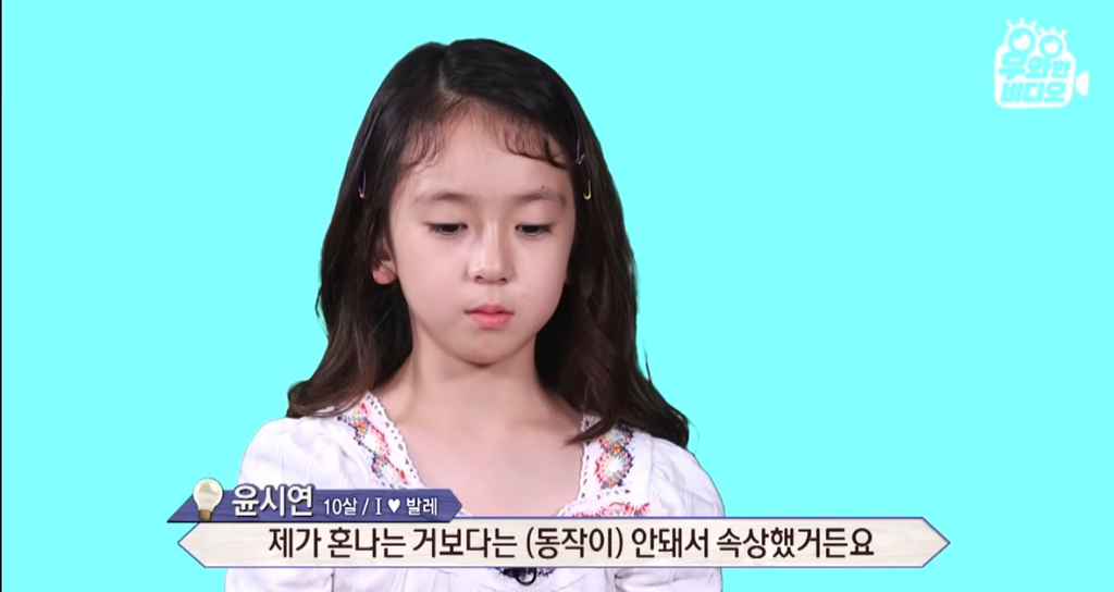 그 어떤 천재도 노력 없인 만들어지지 않는다. 나는 요즘 능력보다 노력의 가치, 하루하루 작은 것의 꾸준함을 더 믿게 되었는데 시연이의 일상을 보면, 캡쳐에 담지 못했지만 모든 순간 모든 시간들이 발레로 가득 채워져있었다. 그런 몰입과 성취 위에서도 10살짜리 꼬마는 힘든 적이 (당연히) 있었고 이에 대해 질문하는 모습.