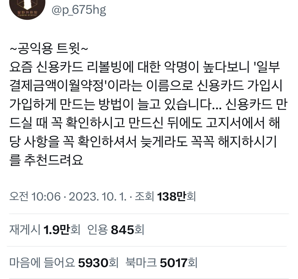 작성자망망아지 작성시간 26.02.11 모르고 쓰면 위험한건 맞는데 만약 대금 못낼 상황이다? 그럼 연체하는것보다는 리볼빙 써서 연체 안되게 하는게 나아 제대로 알고 쓰면 급할땐 ㄱㅊ음..