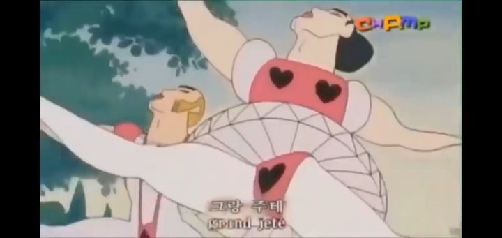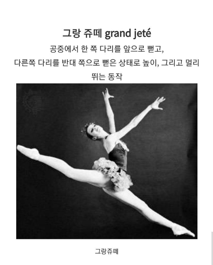 이 동작은 앙트르샤보다는 발을 벌리며 뛰는 그랑쥬떼 (제떼) 에 가까워보인다.