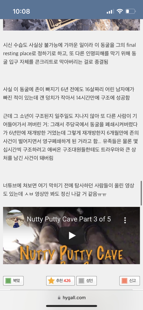 작성자비구름뭉게뭉게 작성시간 26.02.11 뭐...특히 미국같은데는 동굴탐사 취미로 하는 사람 많다며...안타깝네