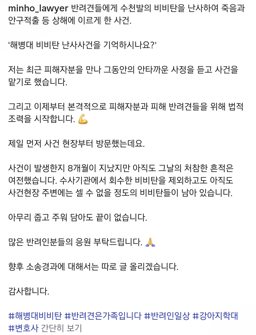 [칵.cxxx]해병대 비비탄 난사사건의 법적 조력자가 되어주기로 한 변호사 작성자눈물이방울방울|작성시간26.02.11|조회수10,210 목록 댓글 33 글자크기 작게가 글자크기 크게가 출처: 여성시대 눈물이방울방울 https://www.instagram.com/p/DUjpt__k5zS/?로그인 • Instagram여기를 눌러 링크를 확인하세요www.instagram.com현장에는 아직도 비비탄 총알들이 남아있다고..ㅅㅂ 다음검색 현재 게시글 추가 기능 열기 북마크 공유하기 신고 센터로 신고 댓글 댓글 33 댓글쓰기 답글쓰기 댓글 리스트 작성자똴뚤 | 작성시간 26.02.11 동료들끼리 서로한테 쏘면 될것을 왜 엄한 동물한테 쏘고지랄이야 돌앗나 지옥가서 똑같이 당해라 작성자요키는사랑 | 작성시간 26.02.11 저놈한테 전국민이 비비탄 쏘게 해야해 작성자트벅트벅 | 작성시간 26.02.11 쳐 맞을라고 비비탄새끼가.. 작성자대빵흥 | 작성시간 26.02.11 와감사하다ㅜㅠㅠ 작성자배고푸수숭숭 | 작성시간 26.02.11 제발ㅜ ㅜ 이겻음좋겟다 댓글 전체보기