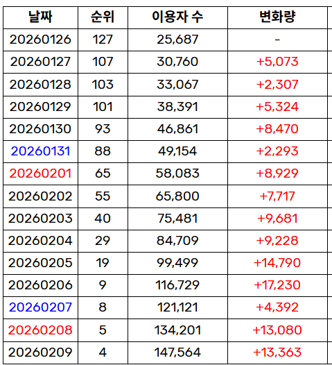 일간 1위까지 찍을 수 있을지 궁금함....