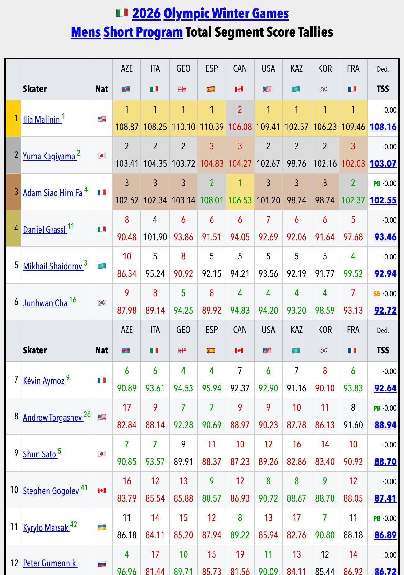(위 - 심판이 준 순위/ 아래숫자 - 심판이 준 점수)
