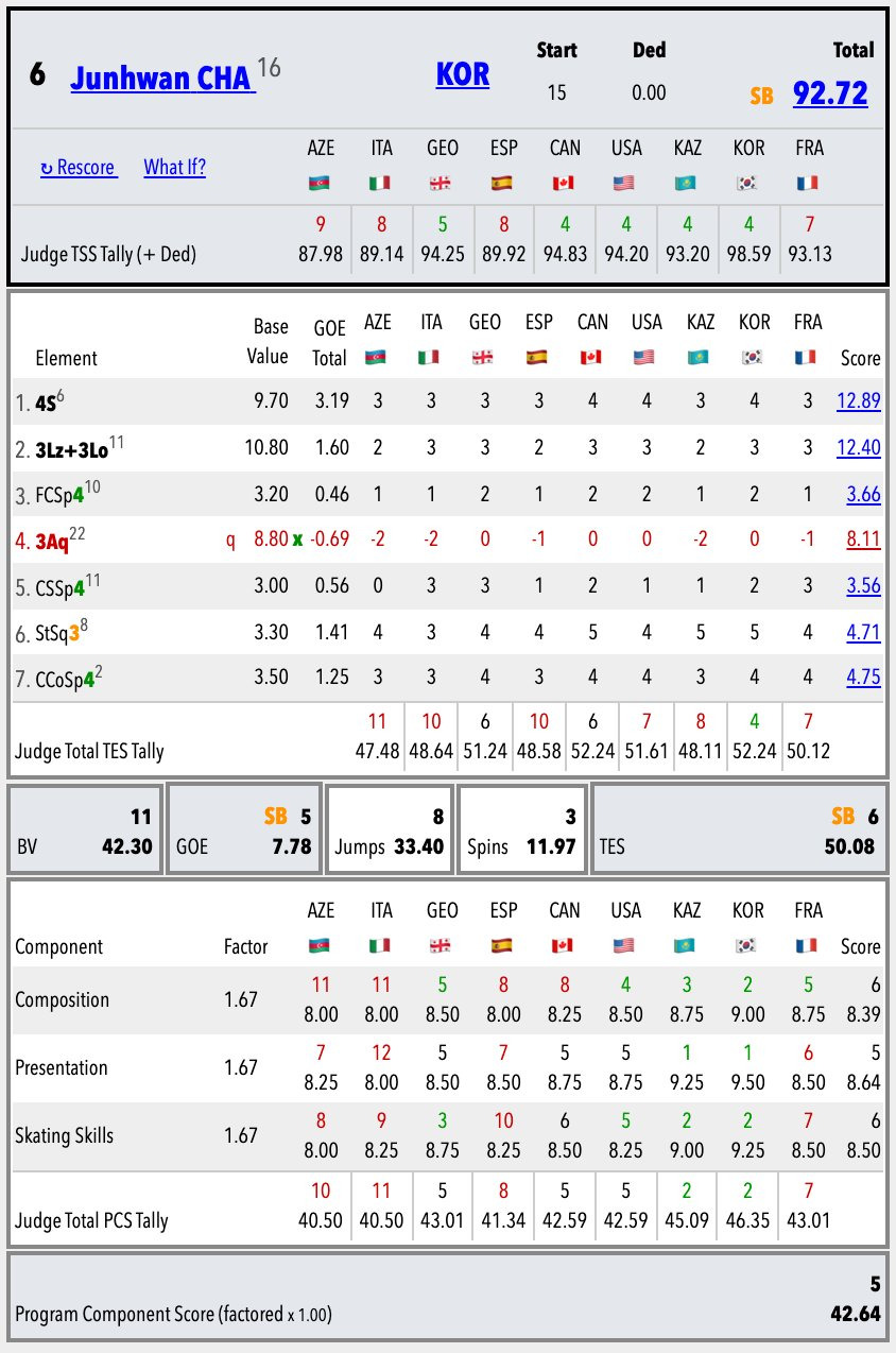 심판별 차준환 점수표