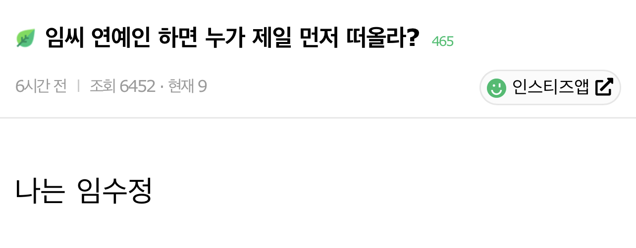 [흥미돋]임씨 연예인 하면 누가 제일 먼저 떠올라? 작성자너너뉘기야|작성시간26.02.11|조회수30,815 목록 댓글 613 글자크기 작게가 글자크기 크게가 출처: https://www.instiz.net/pt/7410008?page=1난 윤아 다음검색 현재 게시글 추가 기능 열기 북마크 공유하기 신고 센터로 신고 댓글 댓글 613 댓글쓰기 답글쓰기 댓글 리스트 작성자갼장게장 | 작성시간 26.02.13 임시완 작성자티즈타 | 작성시간 26.02.13 임지연 임수정 작성자응답하라2002존버 | 작성시간 26.02.14 임백천 쿵쿵따 작성자아기구름 | 작성시간 26.02.15 임문식이 작성자아바라마싯당 | 작성시간 26.02.16 임채무 댓글 전체보기