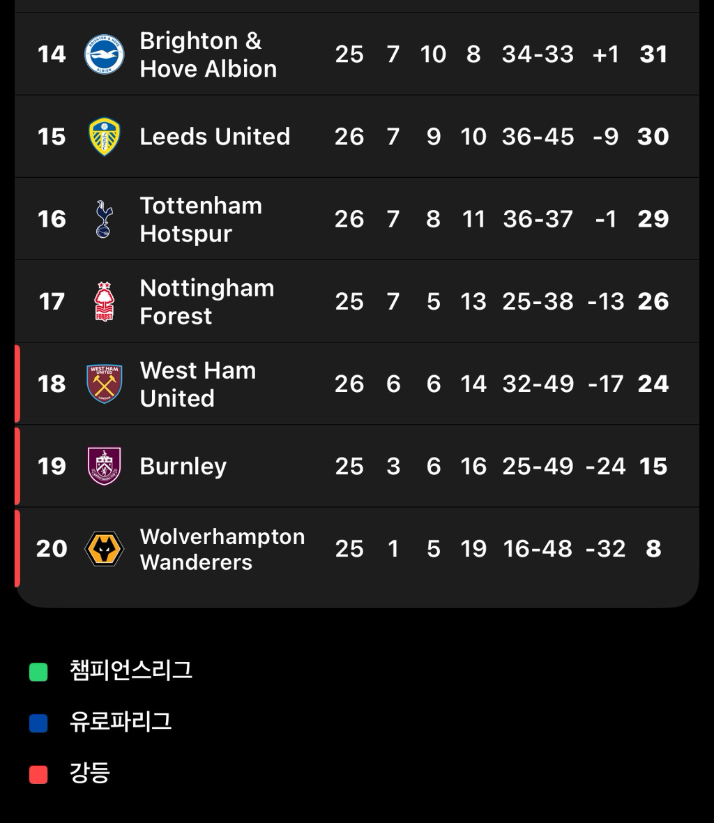 작성자Lego 작성시간 26.02.11 저번 시즌도 이 시기에 이미 밑바닥이지 않았나.. 1월에 이미 15위인가 추락한 걸로 기억하는데.. 유로파 토너먼트 시작도 하기 전에 꼴아박았는데 유로파 때문에 리그 포기했다기엔 그냥 이 팀 역량이 이정도인거지