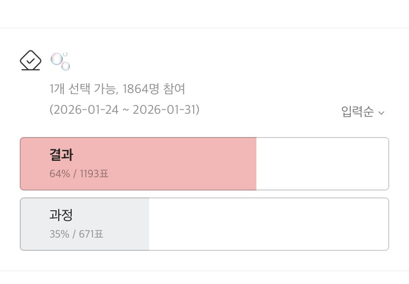 [흥미돋]인생살아보니 결과가 중요하다 VS 과정이 중요하다 작성자에놀라홈즈|작성시간26.02.11|조회수16,588 목록 댓글 258 글자크기 작게가 글자크기 크게가 출처: 여성시대 1차달글https://m.cafe.daum.net/subdued20club/WFYL/1201400모든 이야기의 시작 - Daum 카페모든 이야기의 시작, Daum 카페m.cafe.daum.net실제 투표결과는 이랫음 여시들 생각은..? 다음검색 현재 게시글 추가 기능 열기 북마크 공유하기 신고 센터로 신고 댓글 댓글 258 댓글쓰기 답글쓰기 댓글 리스트 작성자우유우우유유 | 작성시간 26.02.12 과정 언젠간 빛을 볼 날이 옴! 젊어서건 늙어서건 난 무조건 과정이라 생각해~ 힘내자 작성자저스틴비버내한언제옴 | 작성시간 26.02.12 과정 작성자쭈쭈가무시무시 | 작성시간 26.02.12 과정 작성자여자사랑단 | 작성시간 26.02.12 결과에 집착하면 불행해. 과정이 중요함 작성자말랑캉우 | 작성시간 26.02.13 결과 댓글 전체보기