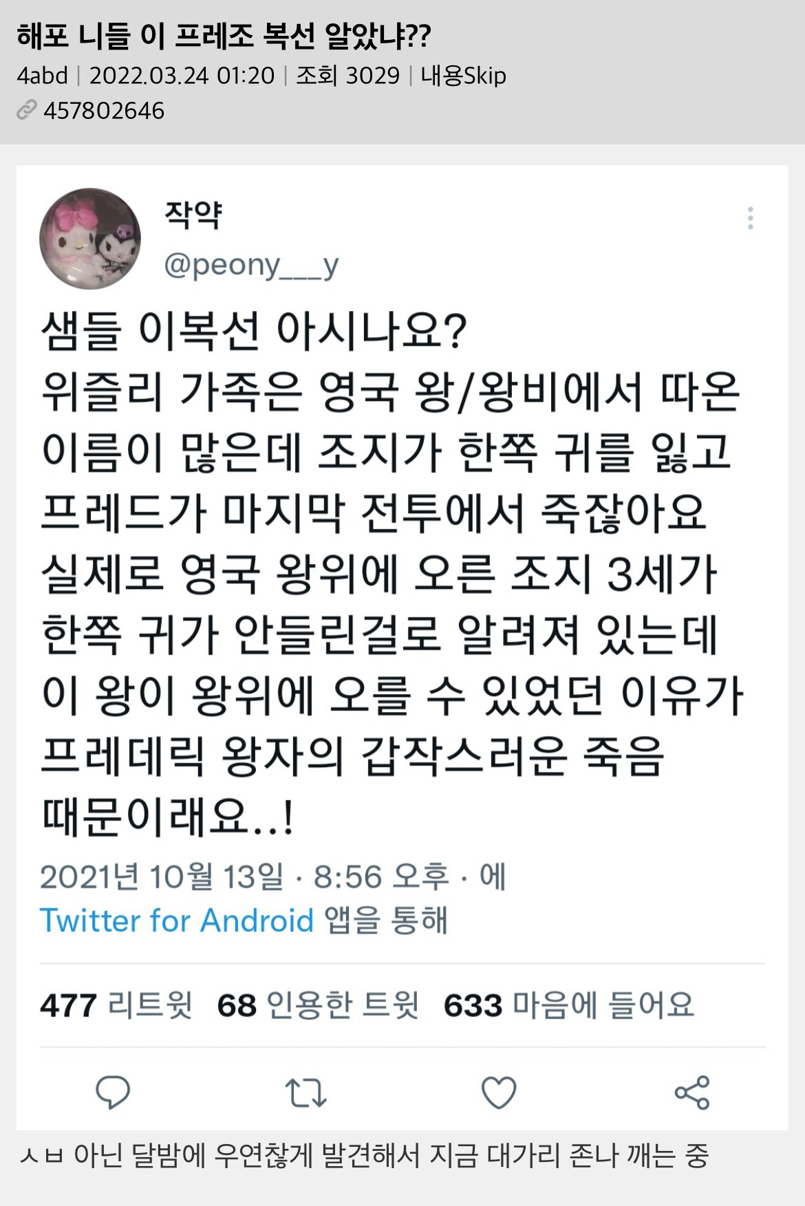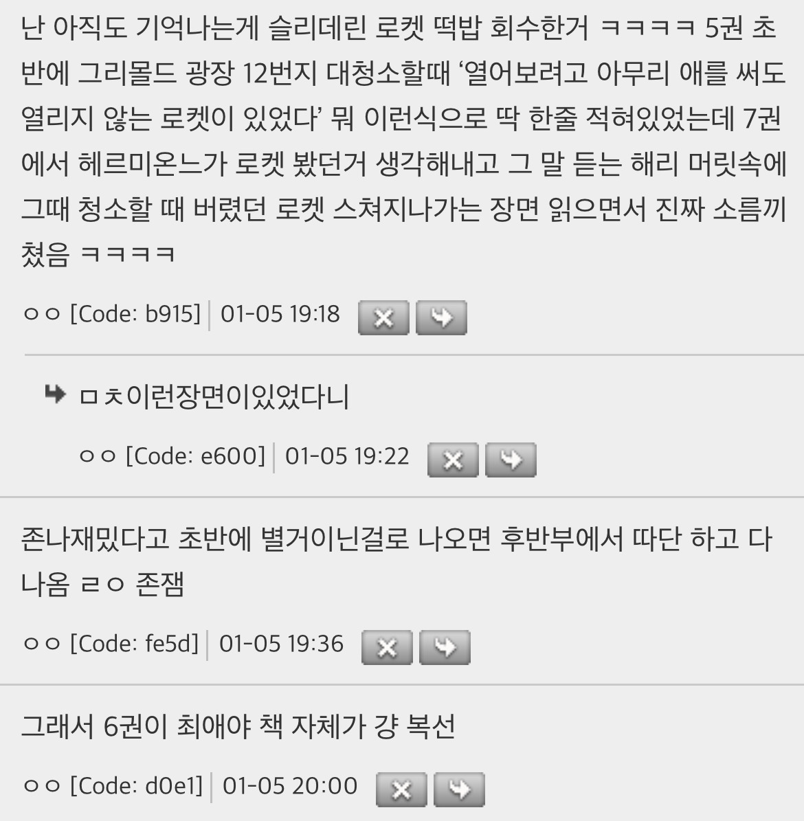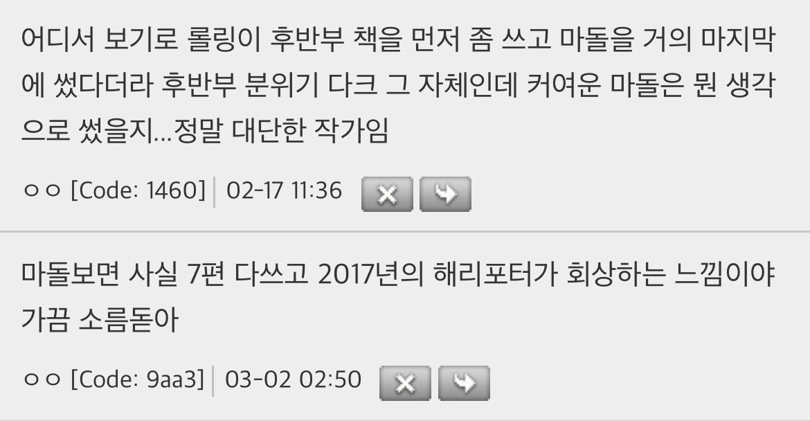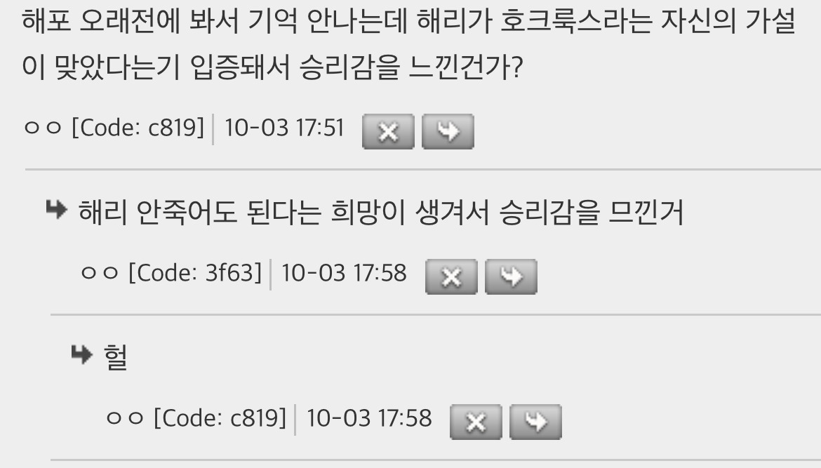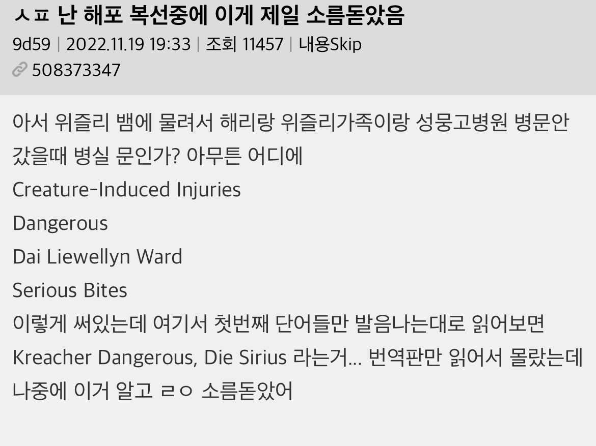 작성자토토로 작성시간 26.02.12 작년에 해포 책 정주행 했는데 진짜 다 알고 보면 떡밥 지리더라 제임스 지팡이 변신술은 못 알아차렸는데 하나 더 알고 간다.. 지린다 진짜