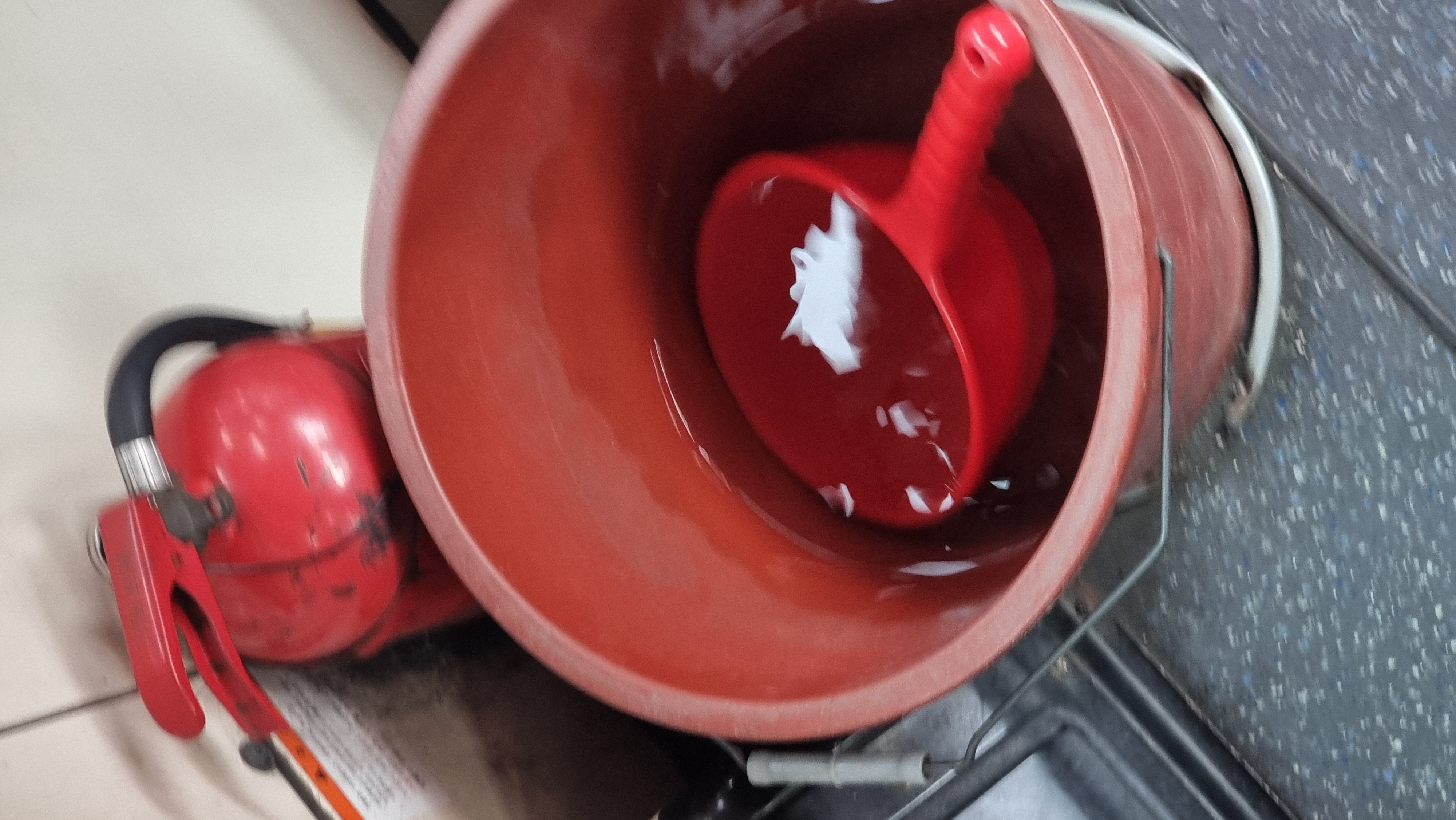 버스마다 밀대걸레랑 물 들어있는 양동이 있음