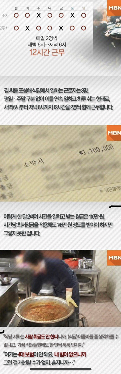 하루 12시간 주6일 혹은 월2회 휴무로 매일 나가시는분들 엄청 많음.. 계속 서서 일하고, 그럼에도 저임금