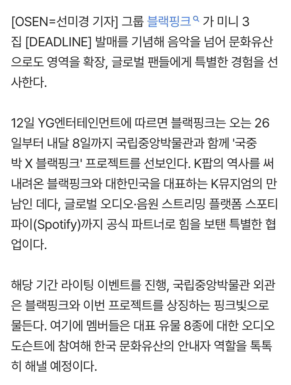 외관도 블핑 상징인 분홍빛으로 바뀔 예정, 블랙핑크 멤버들이 국중박 대표 유물 8종 도슨트에 참여