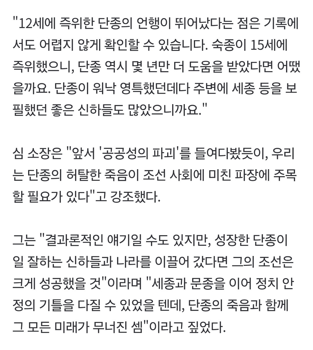단종 개인에 대한 동정을 떠나서 국가 시스템이 무너진 게 핵심임.