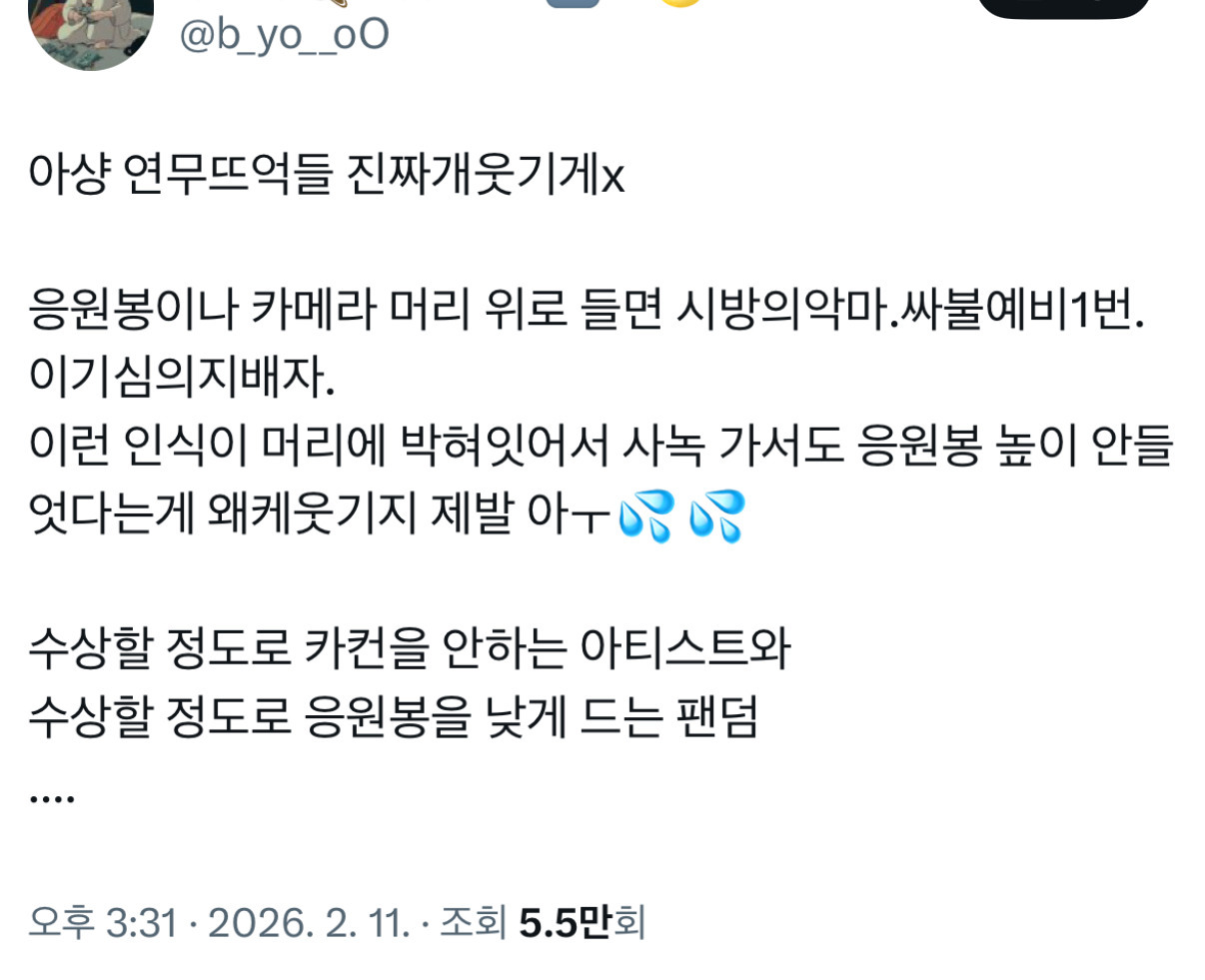 (방송국: "지구인분들, 카메라에 나오도록 응원봉 높게 드실게요")