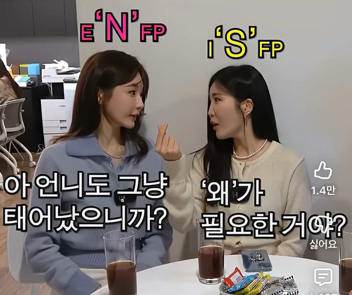 작성자껄껄깔깔낄낄 작성시간 26.02.13 와 나도 ISFP인데 T냐고 많이 물어봄; S가 높아서 그렇네