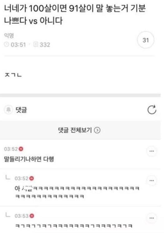 작성자모르능개산책 작성시간 26.02.13 ㅋㅋㅋ근데 우리 주간센터 할모니는 싫어했음... 87세 핳머니가 82세 할모니 써가지없다고 혼내는거 목격함