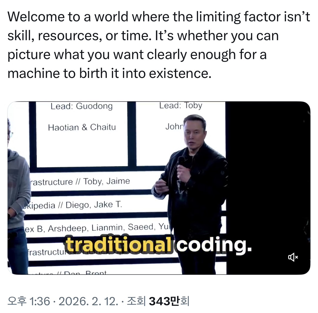 일론 머스크는 올해 코딩이 종말을 맞이할 것이라고 생각한다. 이는 진화가 아니라, 완전한 사멸을 의미한다.