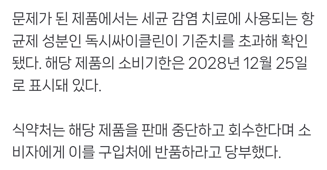 동물용의약품 초과 검출됐음