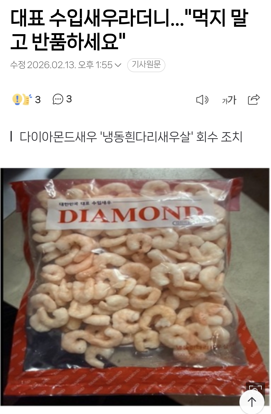 다이아몬드 냉동 흰다리살 새우 중에