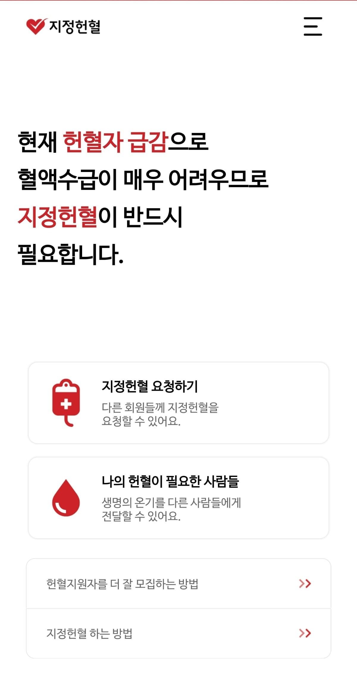 말그대로 지정헌혈을 위한 앱임