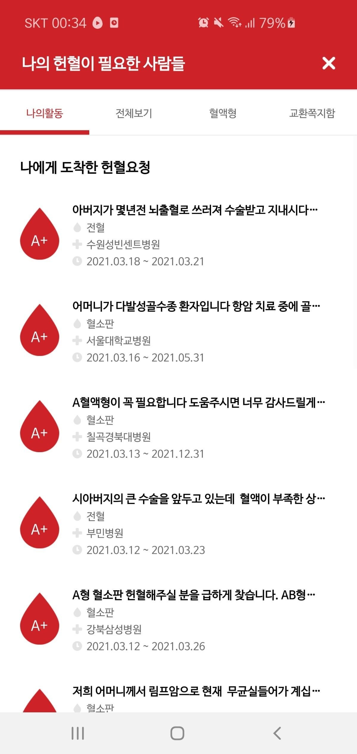 물론 전체보기로 모든 혈액형의 요청을 확인할 수도 있음