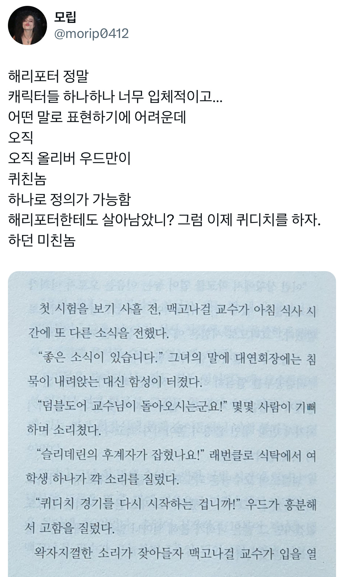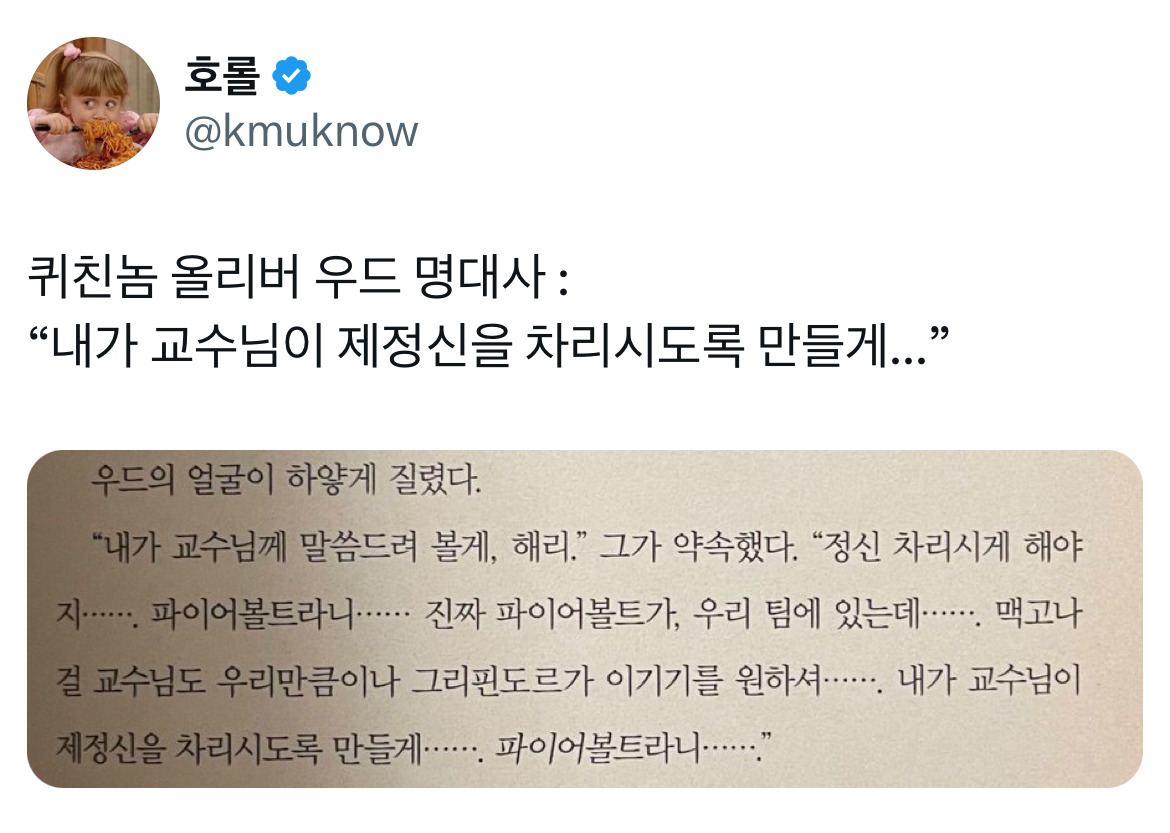 [스크랩] [흥미돋]해리포터 캐릭터들 하나하나 너무 입체적이고 어떤 말로 표현하기에 어려운데 오직 올리버 우드만이.twt