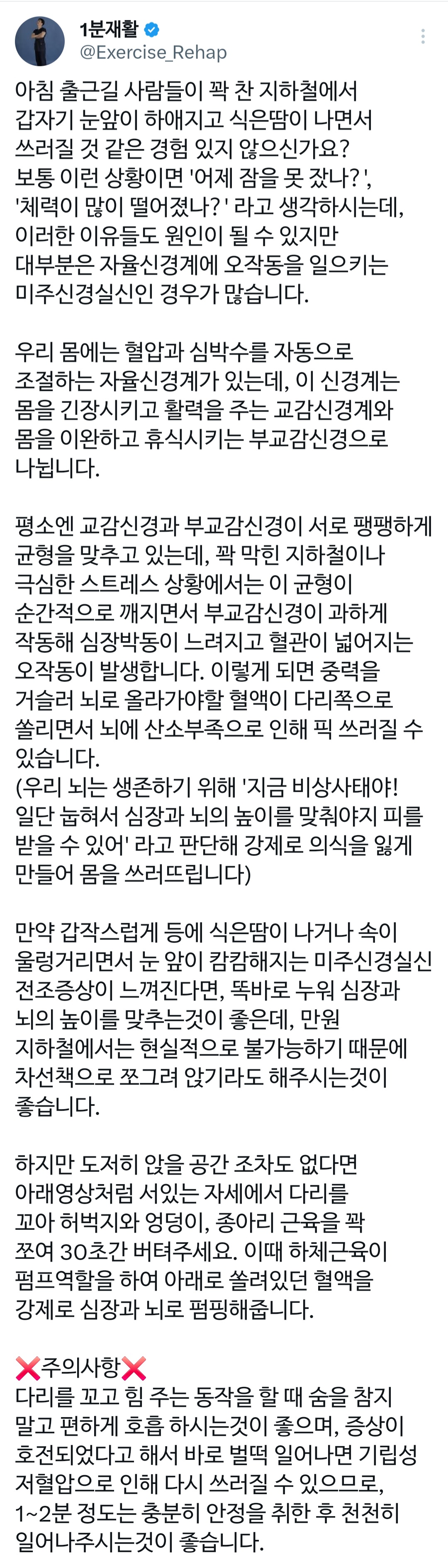 작성자델리만쥬빵 작성시간 26.02.14 앉아있는 상태에서도 할수있는 방법 있나?? 저번에 비행기 장시간 타고 가다가 화장실가려고 일어났는데 기내에서 미주신경성실신으로 쓰러진적 있음 ㅠ 눕자마자 바로 괜찮아지고..