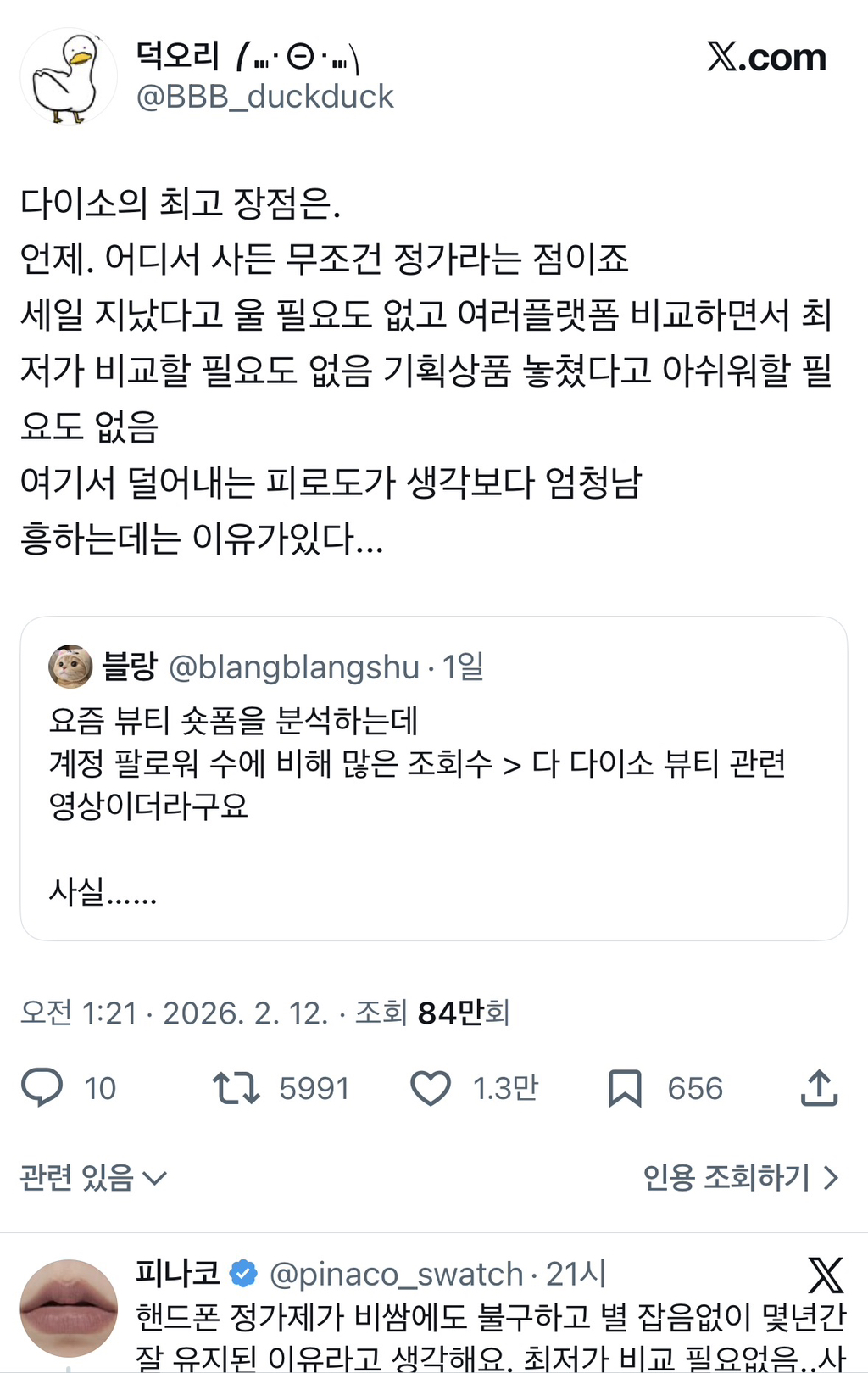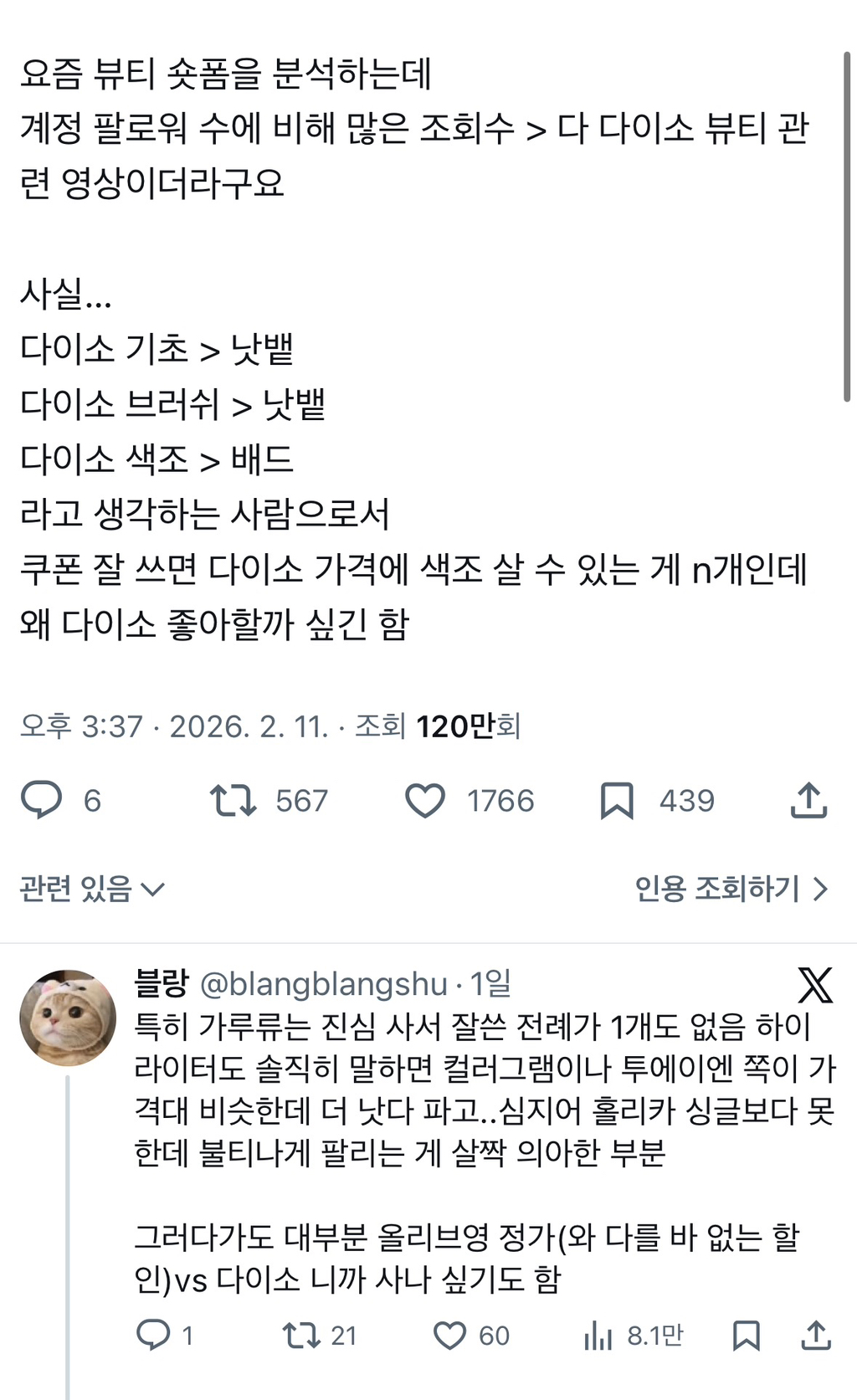 [스크랩] [흥미돋]다이소의 최고 장점은. 언제. 어디서 사든 무조건 정가라는 점이죠 작성자엥엥ㅇ|작성시간26.02.13|조회수46,456 목록 댓글 41 글자크기 작게가 글자크기 크게가 ㄹㅇ 올영에서 뭐 샀는데 며칠뒤에 가격 확 내려가있으면 기분구림...얼마가 젤 최저가인지 확인하는거 피곤해 다음검색 스크랩 원문 : *여성시대* 차분한 20대들의 알흠다운 공간 현재 게시글 추가 기능 열기 북마크 공유하기 신고 센터로 신고 댓글 댓글 41 댓글쓰기 답글쓰기 댓글 리스트 작성자muso | 작성시간 26.02.14 화장에애초에그렇게욕심이없으니까..^^싸고대충만기능하면됨 작성자푸른눈물흘리는만학도 | 작성시간 26.02.14 다이소 실패하면 걍 빵사먹은셈 치는데 올영에서 사고 실패하면 기분 개더러움 작성자뉸뉴냠 | 작성시간 26.02.14 맞아@ 작성자싶핥언제관두냐 | 작성시간 26.02.14 올영 진짜 짜증 세일만 기다려야됨 작성자보라유부초밥 | 작성시간 26.02.14 아 맞아... 댓글 전체보기