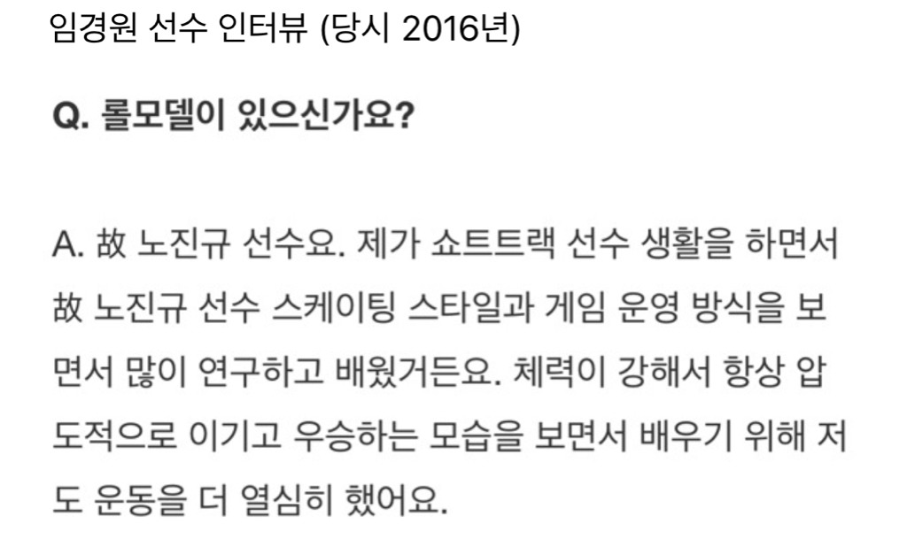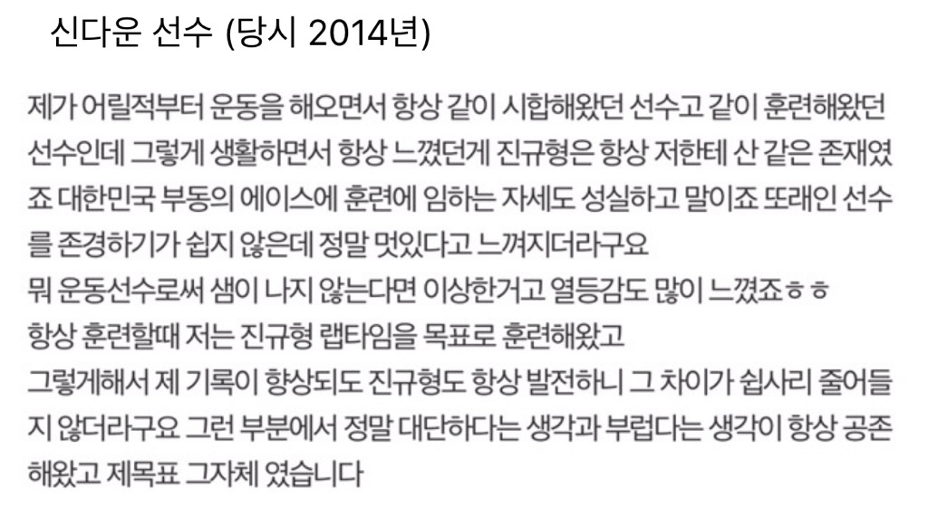당시 박승희 선수의 추모글이야. 이 외에도 노진규 선수를 그리워하는 많은 글들이 올라왔고 우리나라 선수들은 물론 아리아나 폰타나, 찰스 해믈린 등 외국 쇼트트랙 선수들도 노진규 선수의 부고를 안타까워 하며 추모글을 올렸었어. 찾아보면 그가 평소에 선수들 사이에서 얼마나 대단했고 좋은 사람이었는지 알 수 있을거야.