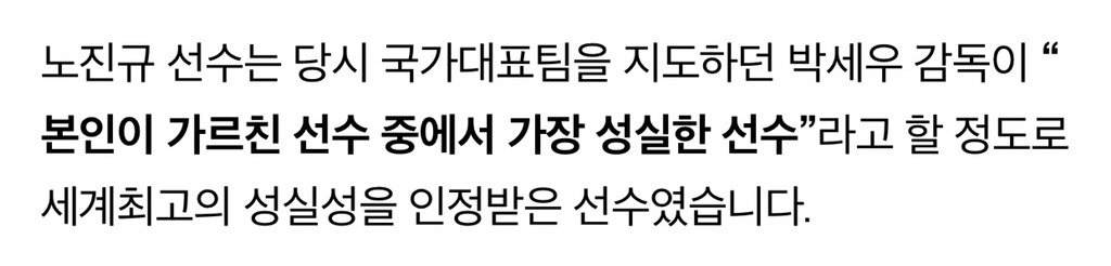 노진규 선수는 평소에 동료 선수들에게도, 그를 지도하는 감독과 코치들에게도 귀감이 되던 성실한 선수였어. 하지만 이런 칭찬에도 그는