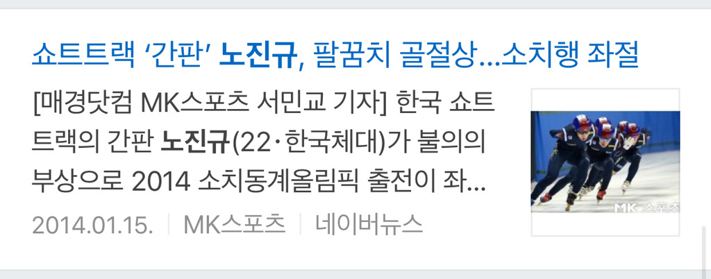 당시 1500m에 있어서 노진규 선수를 따라올 자는 없었어. 쇼트트랙 역사상에도 찾아보기 힘든 한 종목 11연승을 달성한 선수였어.