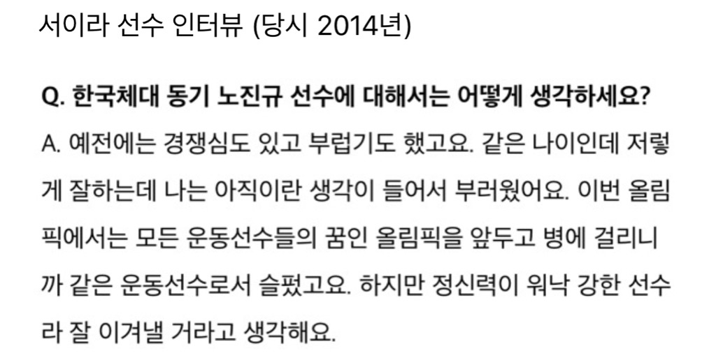 동갑내기 친구이자 한체대 동기였던 서이라 선수