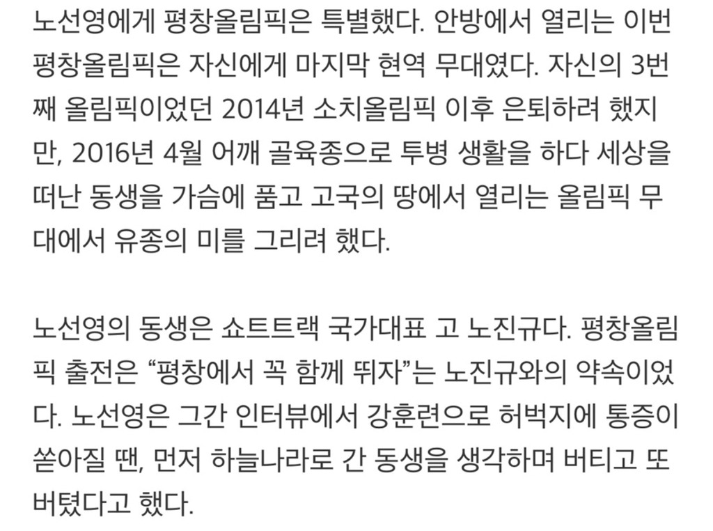 올림픽에 나가는게 꿈이었던 선수를 올림픽 기간에 한번이라도 더 생각해주면 어떨까 싶어서 글 쓰게 됐어. 다들 가끔 한번쯤 이런 멋진 선수가 있었지 하고 기억해주길 바라며 글 마칠게.
