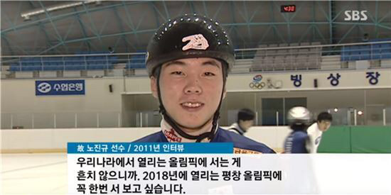 노진규 선수는 현재 올림픽에 출전하고 있는 쇼트트랙 선수들의 동료선수였어.