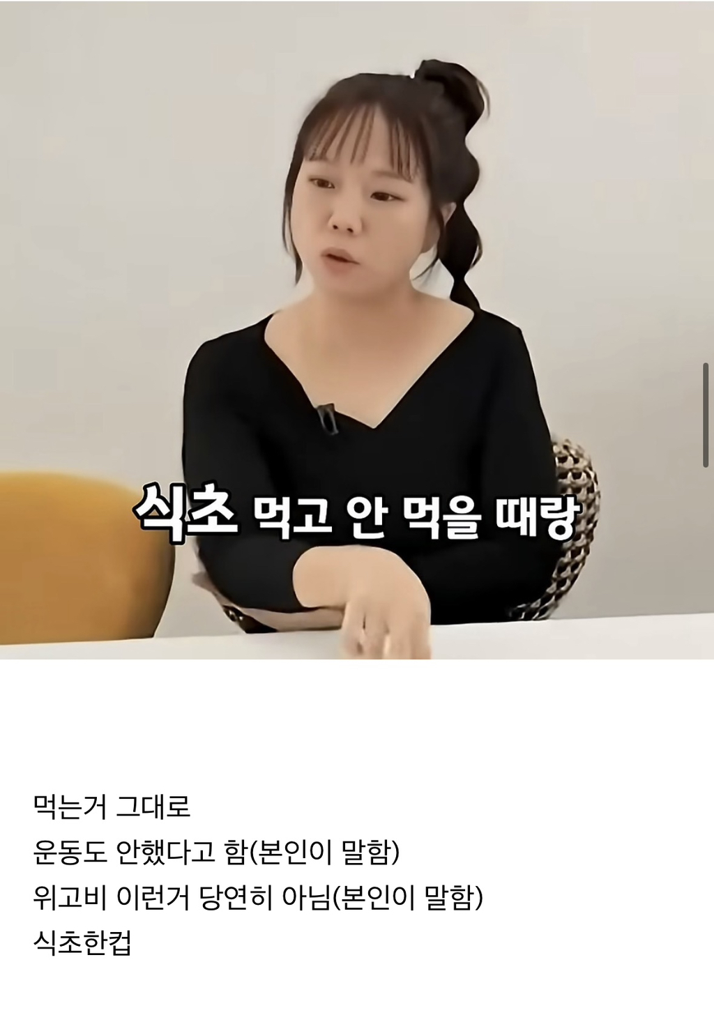 식초먹고 혈당 튀는거 막아서 도움봤다고 말했지만 본인 다이어트의 가장 큰 핵심은 16시간 공복이었다고 함