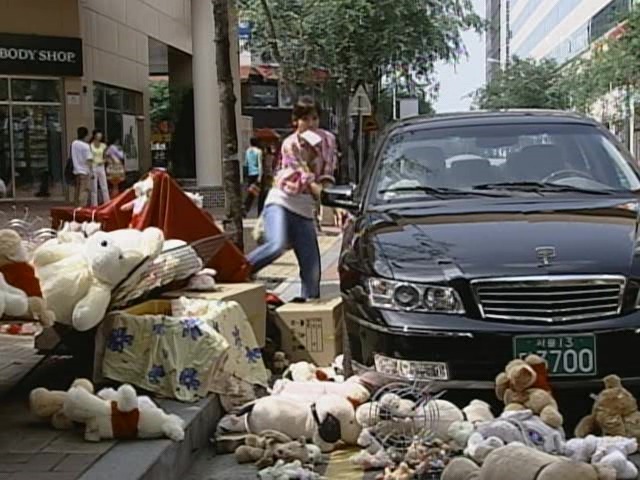 자기 노점상 앞에 세워둔 차를 보고 분노하고