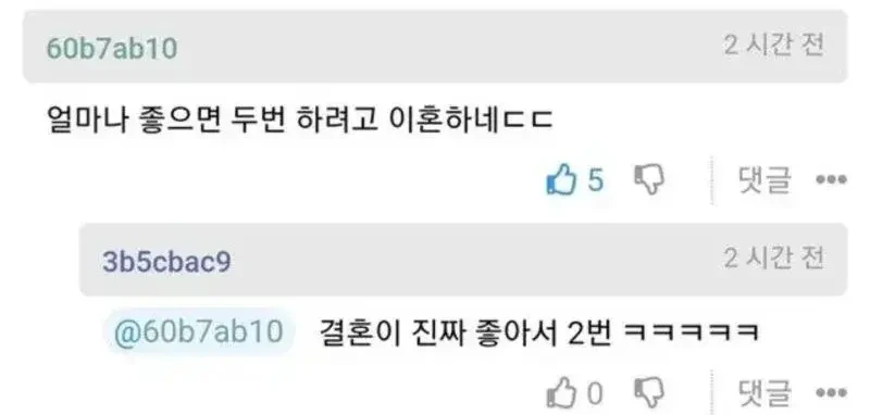 작성자치킨스테이크 작성시간 26.02.14 맞네 결혼 좋아서 이혼 ㅋㅋ