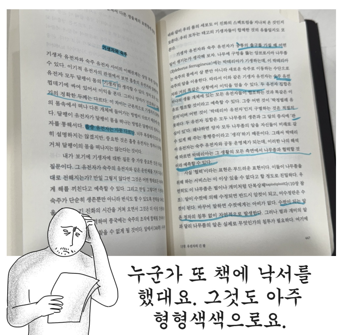작성자꺄압 작성시간 26.02.14 아니 진짜 남의 책에 왜저러는거임 도서관에서 볼때마다 연필도 이해가 안됨 지울거아니면 연필도 하지말라고요 어차피 줄그어봤자 다 기억도 못하면서