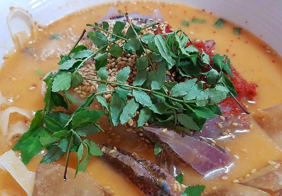 살이 잘 오른 전갱이와 배추 잎을 넣고 구수하게 끓인 각재기국은 갈칫국보다 기름질 것 같지만 담백하고 고소한 맛이 일품이다."