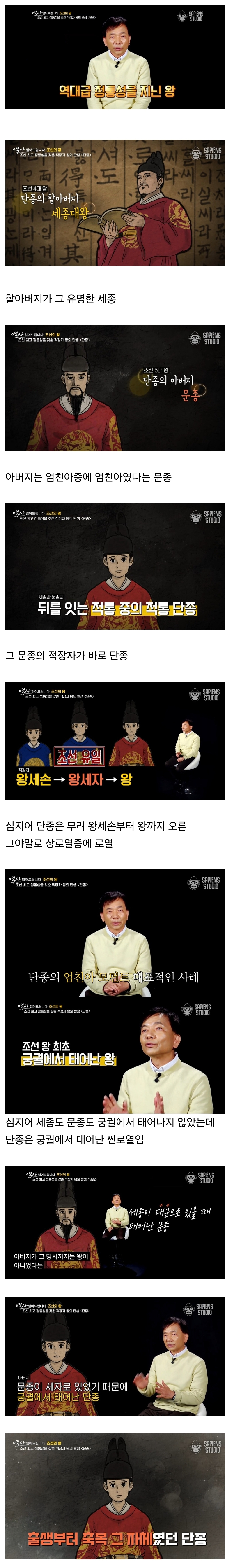 그러니 단종은 그야말로 고조할아버지이자 초대 군주인 태조의, 그 정실 소생 적자인 태종의, 그 정실 소생 적자인 세종의, 그 정실 소생 적장자인 문종의, 그 정실 소생 적장자로