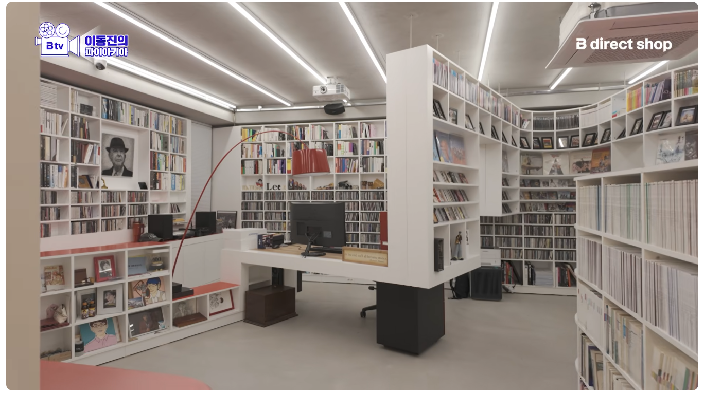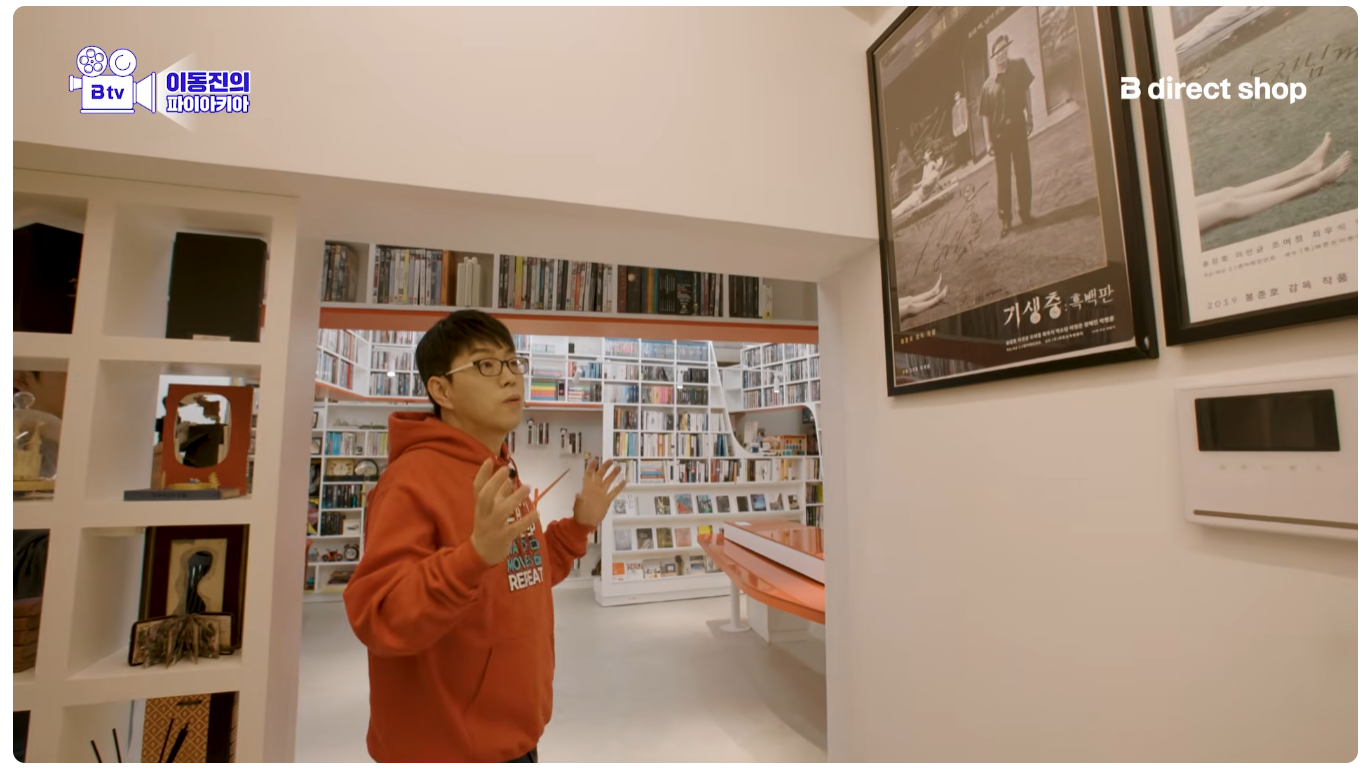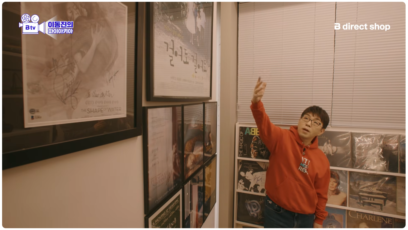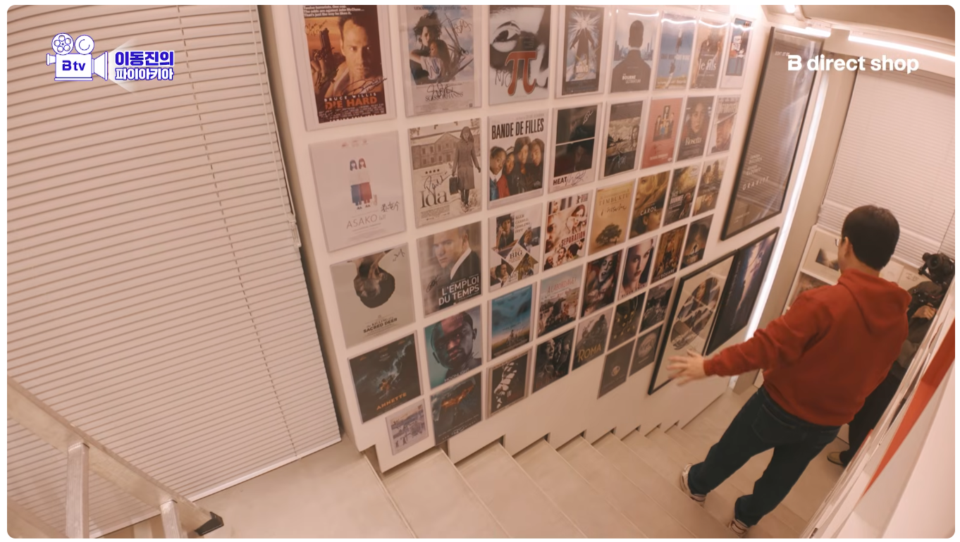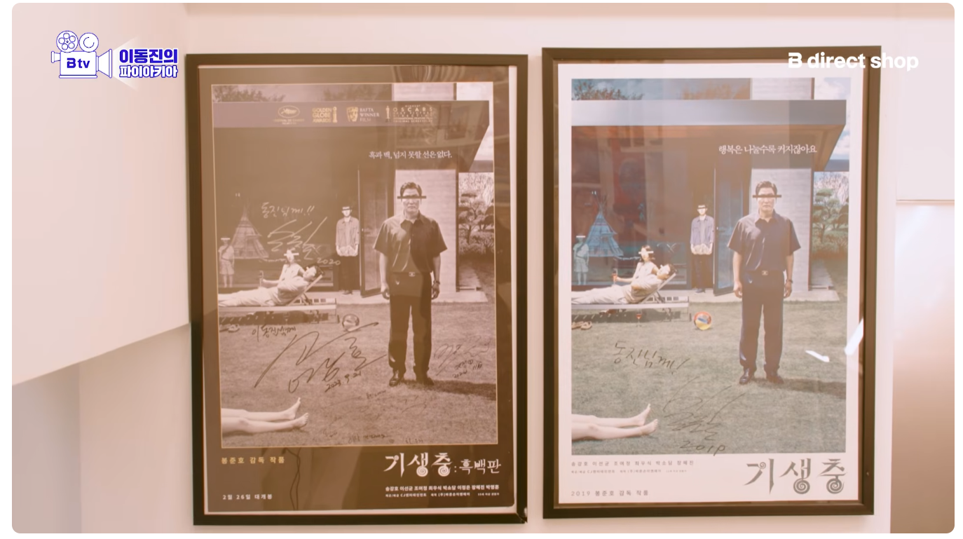 이동진 작업실 기생충 액자 두 개 위아래 단차 안 맞는다