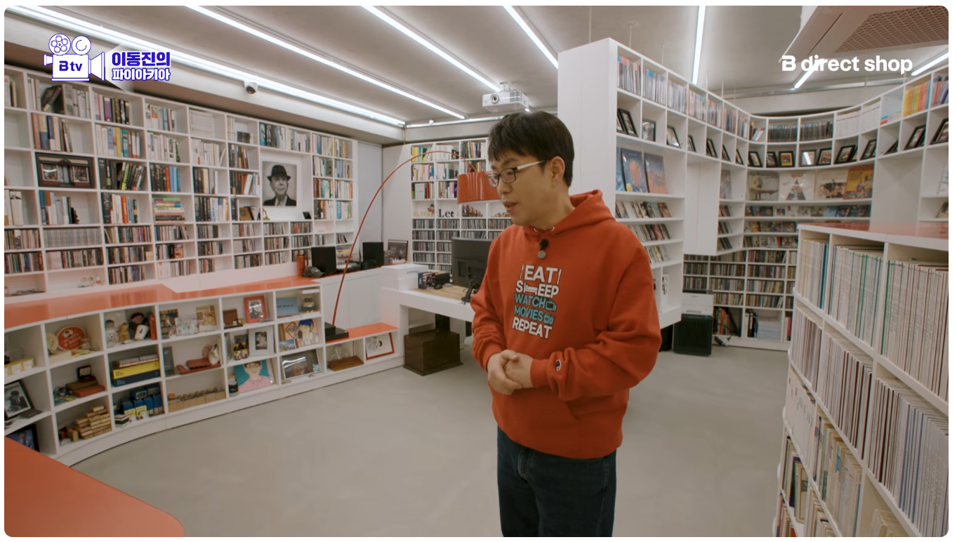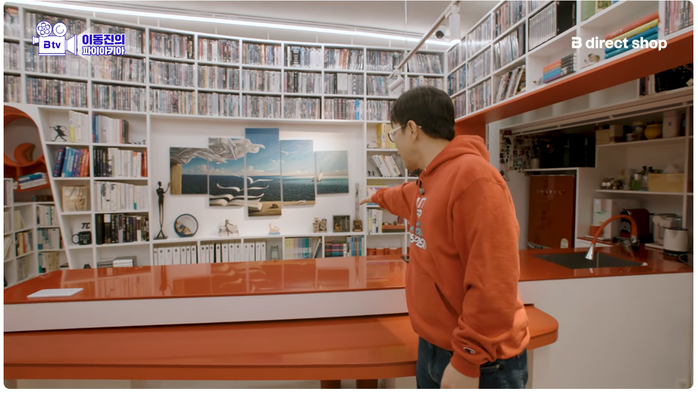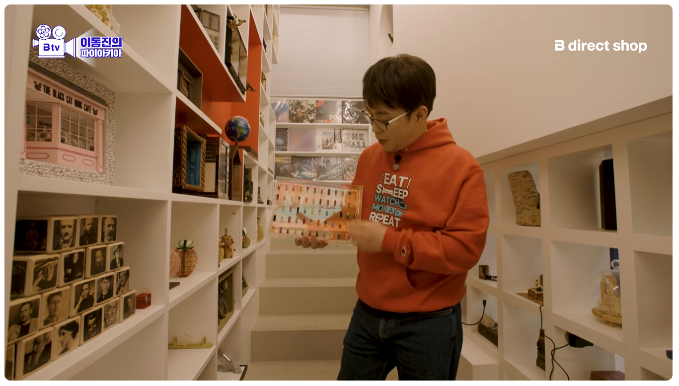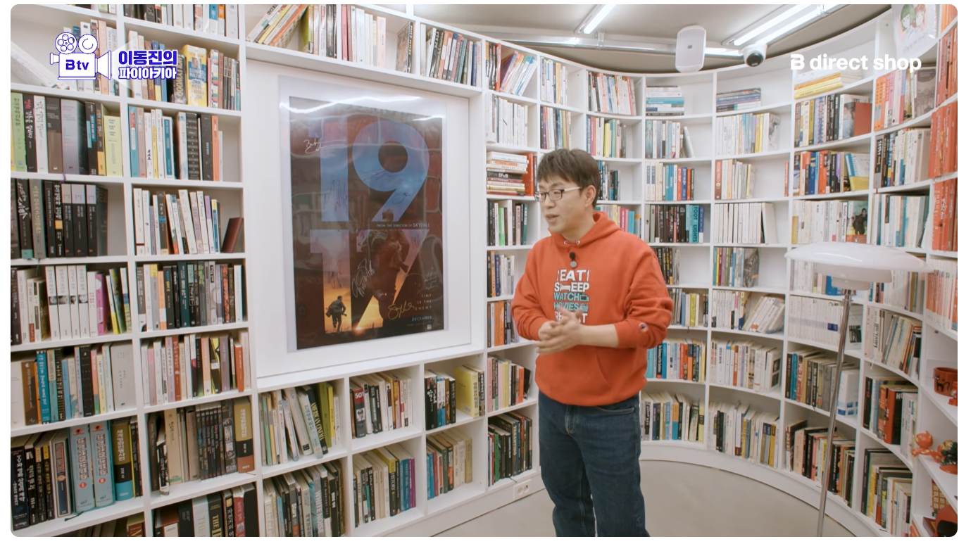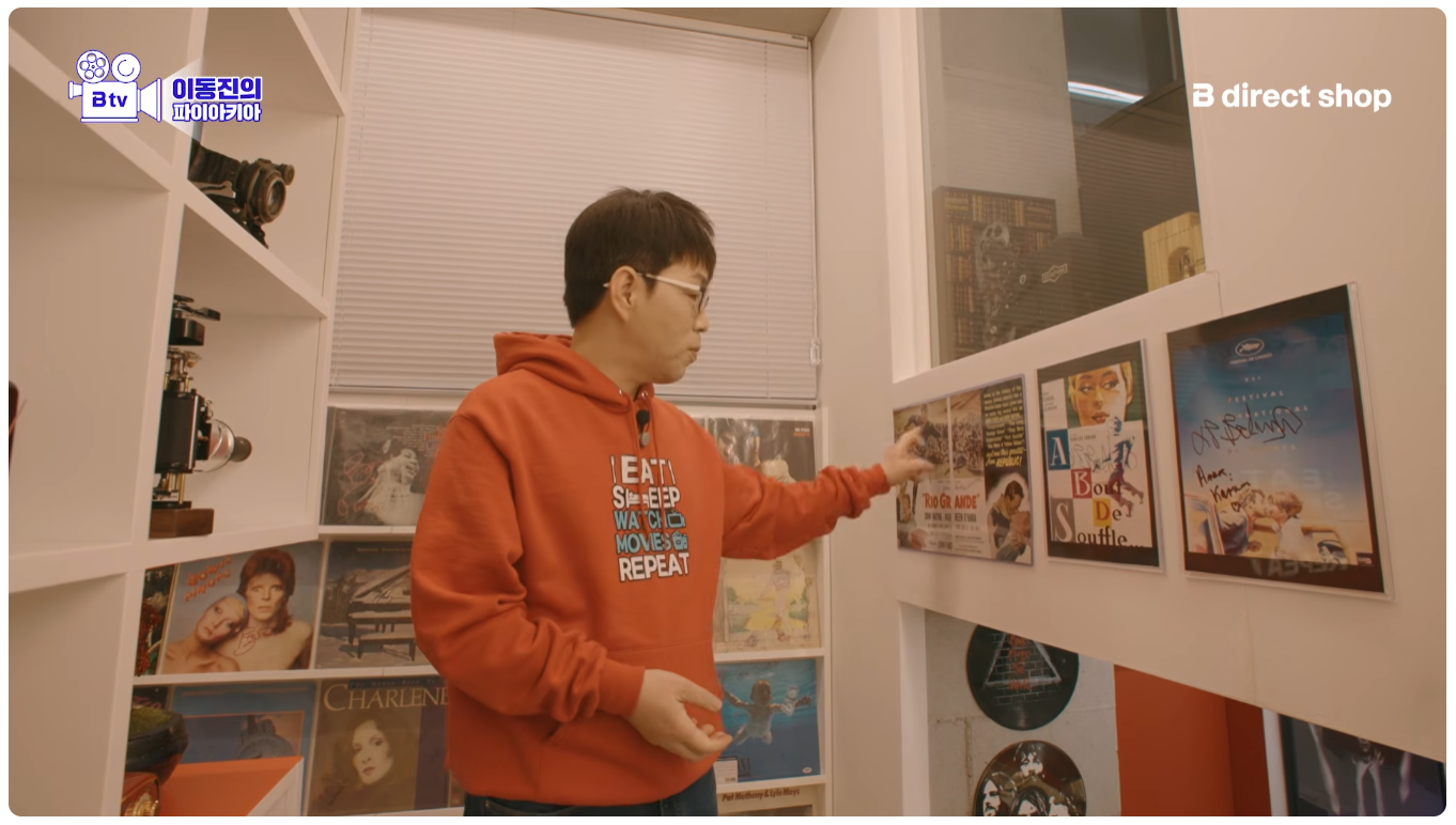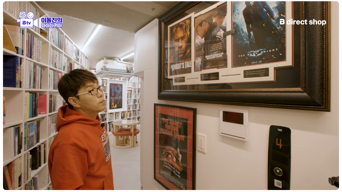 이동진 작업실 기생충 액자 두 개 위아래 단차 안 맞는다