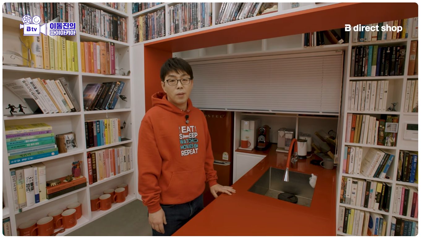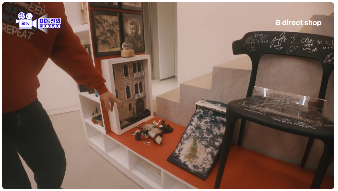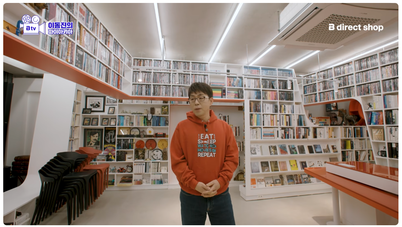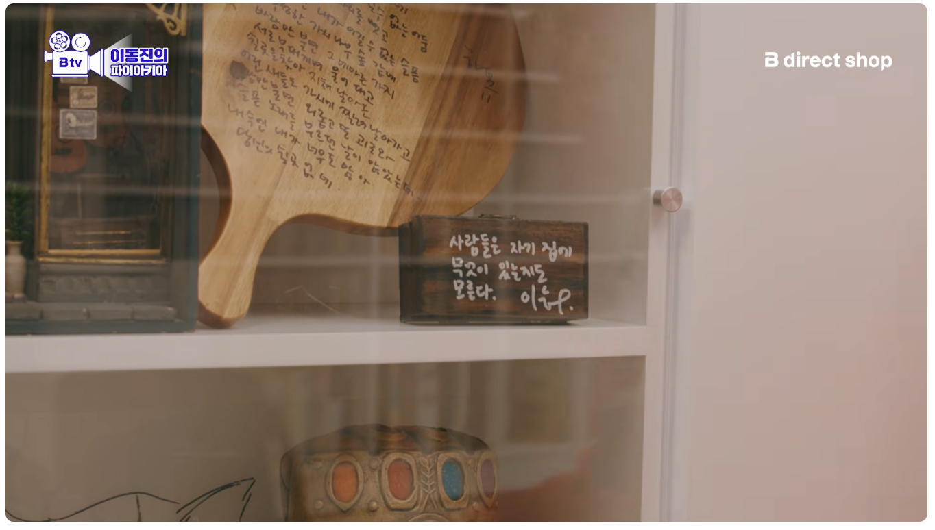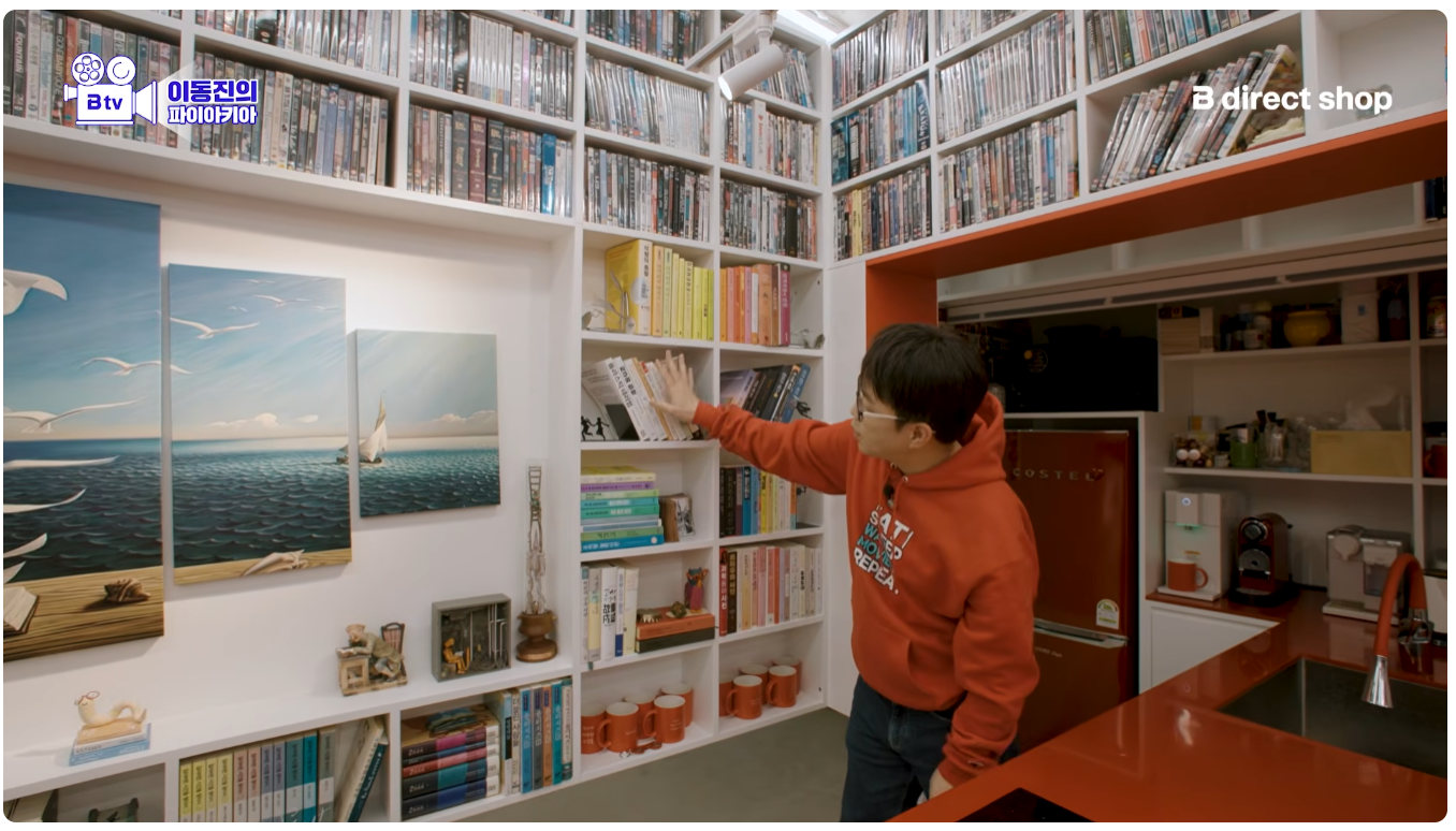 이동진 작업실 기생충 액자 두 개 위아래 단차 안 맞는다