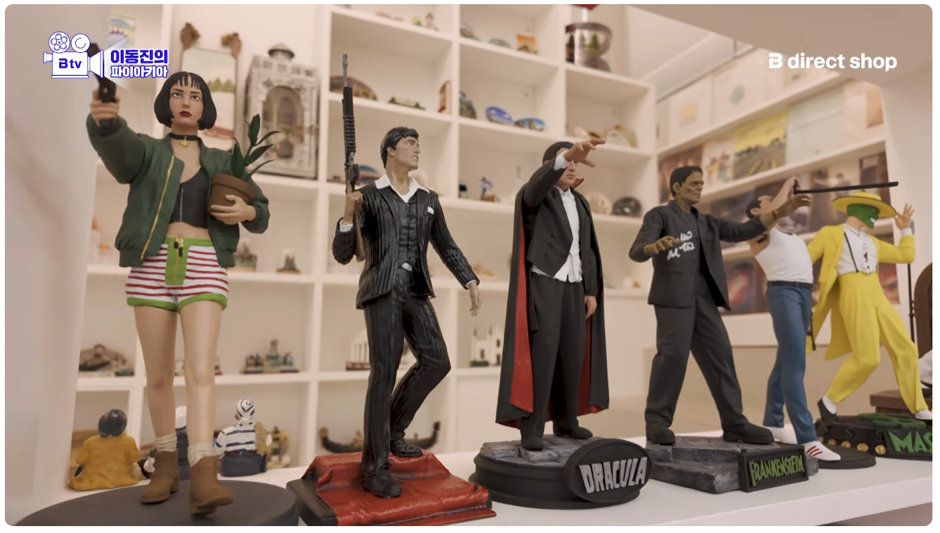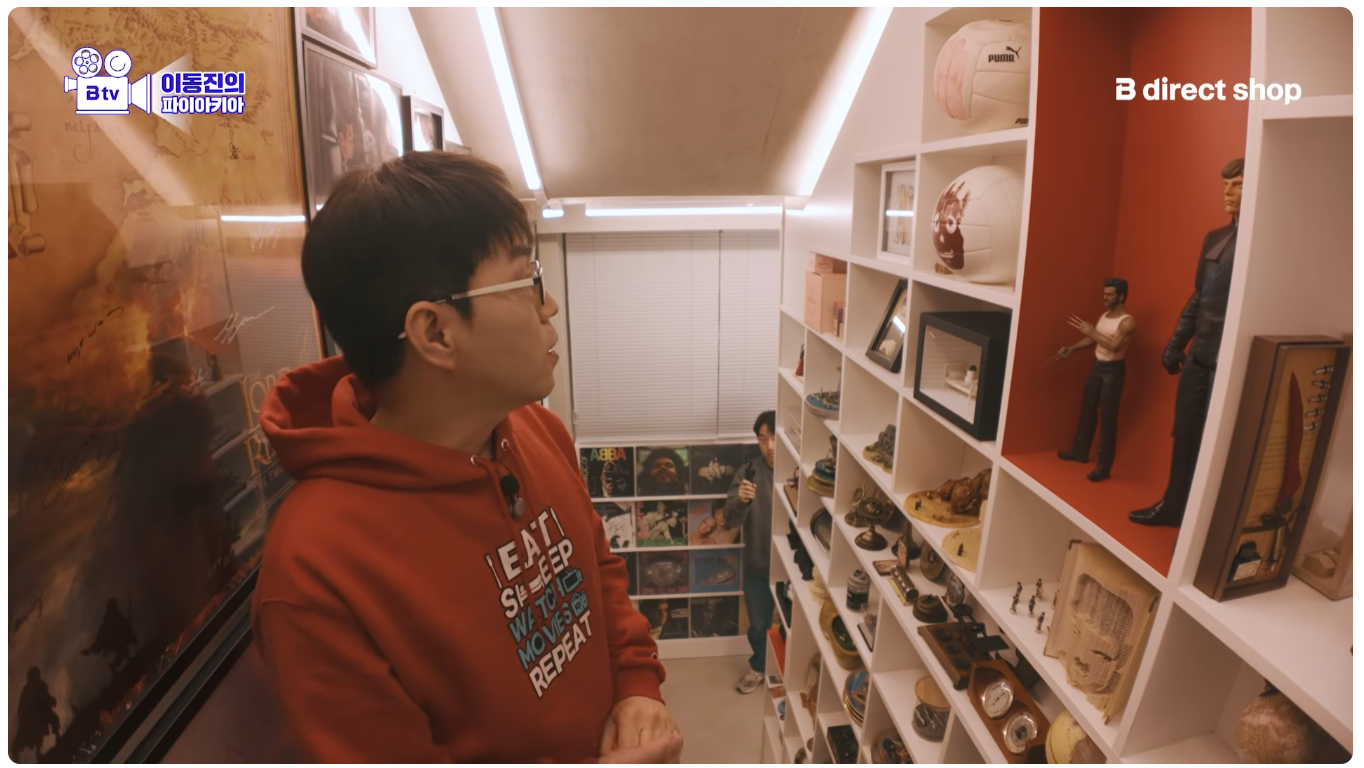 여기 있는 수집품들은 경매에서 사기도 하지만 빨안이 직접 주문제작한 영화 소품에다가 감독이나 배우에게 대면 싸인 받은 게 대부분이라고 함