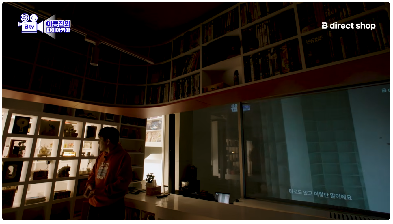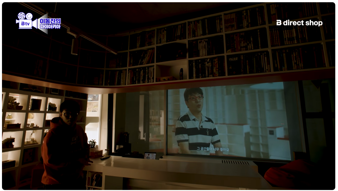 저기에 스크린 설치해서 저걸로 영화 감상한다고 함