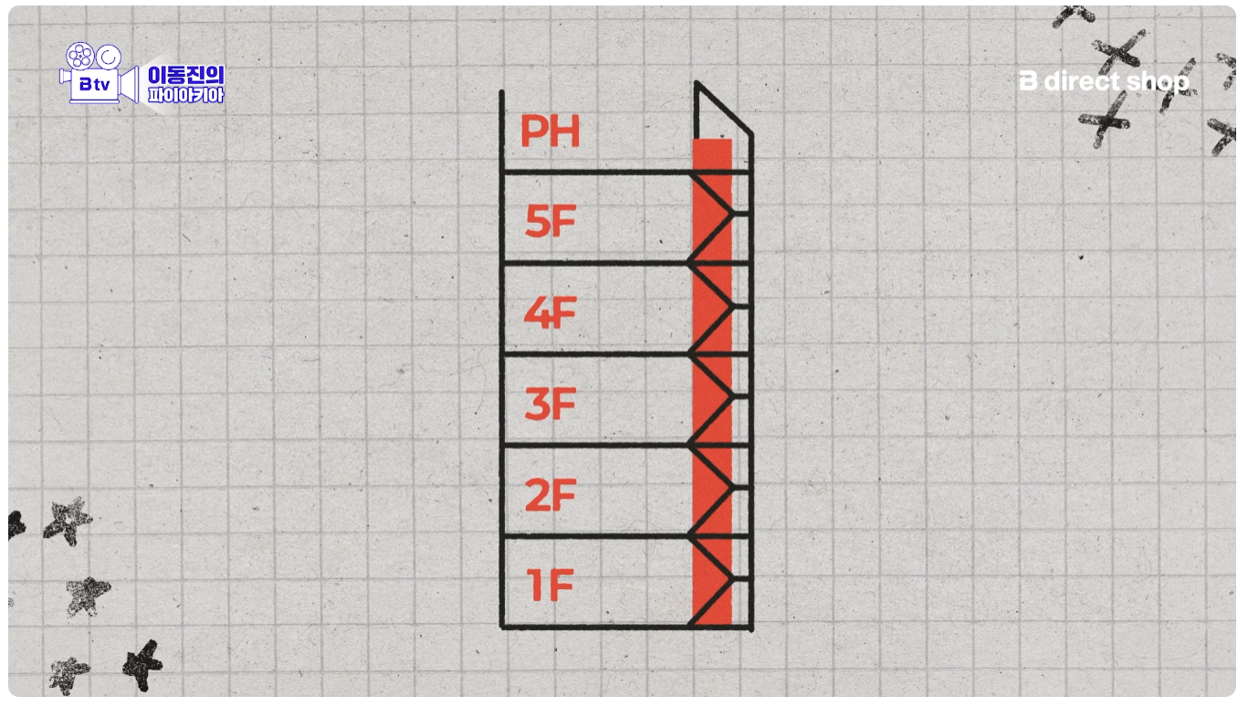 한 층을 빌린 게 아니라 5층 건물의 저 평수만큼을 나눠서 5층의 저 구획을 따로 쓰나 봄