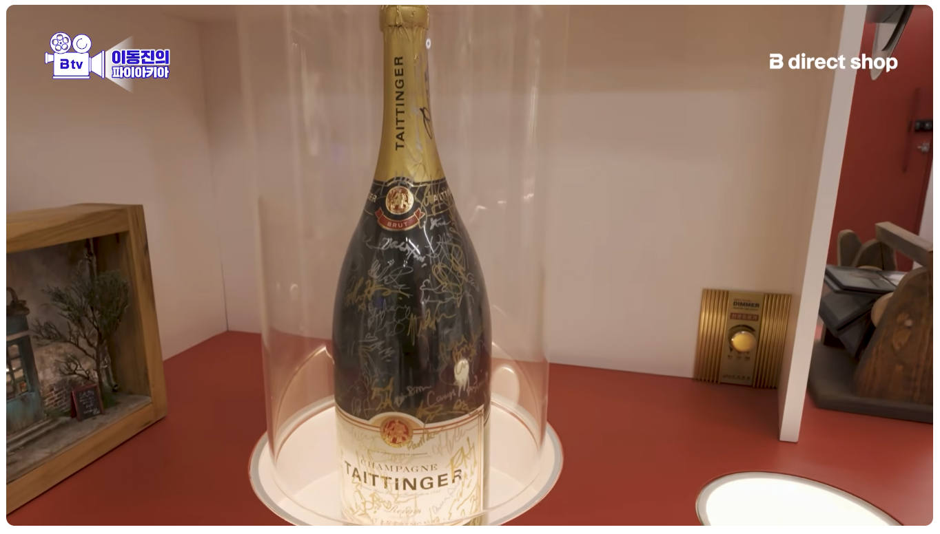 샴페인병인데 이 위에 (당시) 모든 할리우드 스타들의 친필 싸인이 있다고 함